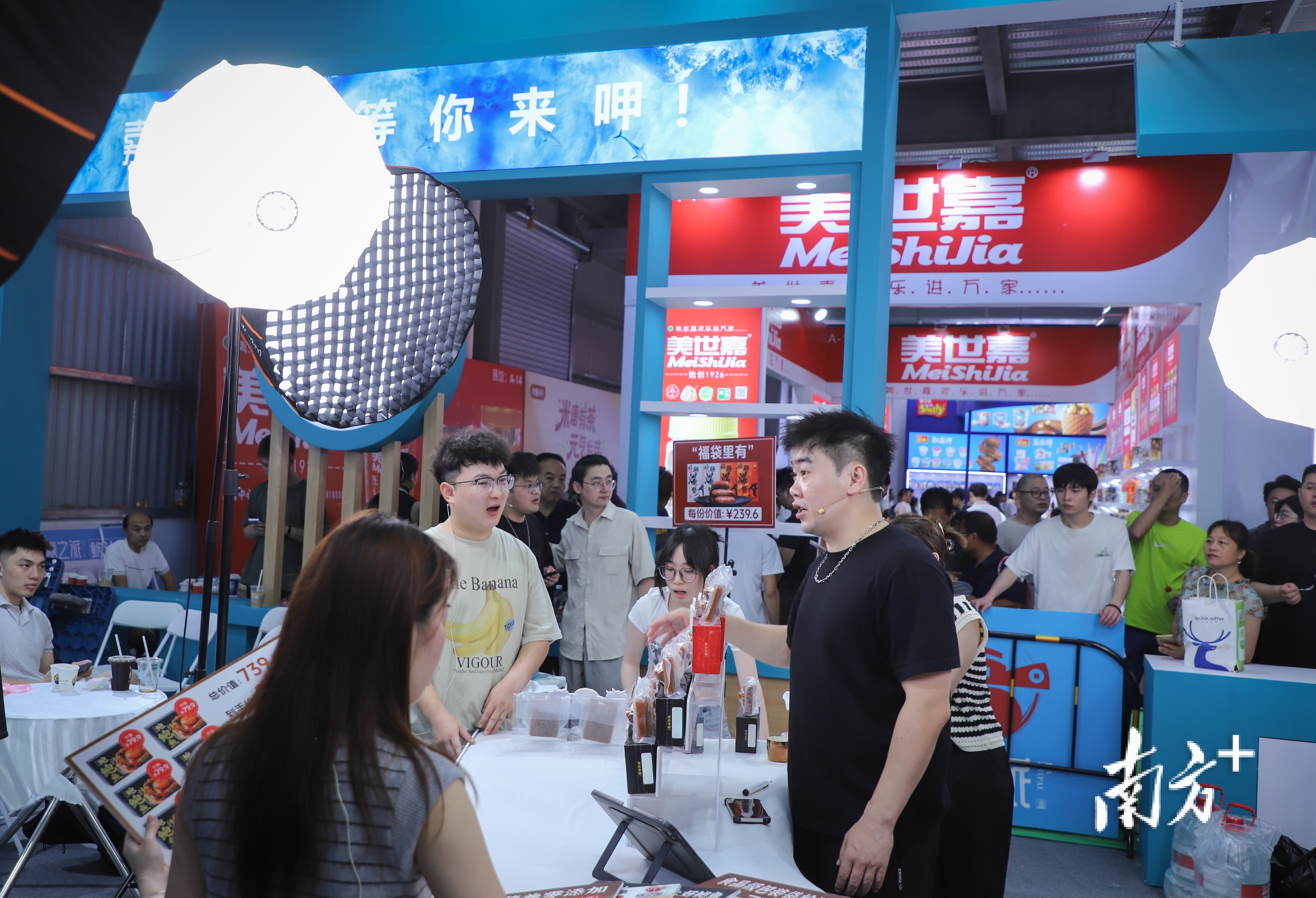 位于A馆的休闲食品专区最为瞩目。色彩缤纷的创新糖果构筑起“甜蜜方阵”:采用代糖配方的低卡软糖、添加益生菌的功能性糖果、融入胶原蛋白肽的棉花糖等新品琳琅满目,呈现了“美味与健康并存”的消费新趋势。展会现场,网络头部主播“嘉之派”正通过直播向线上观众推介黑松露鲍鱼等特色食品,这种线上线下联动的创新营销模式成为本届展会的一大亮点。