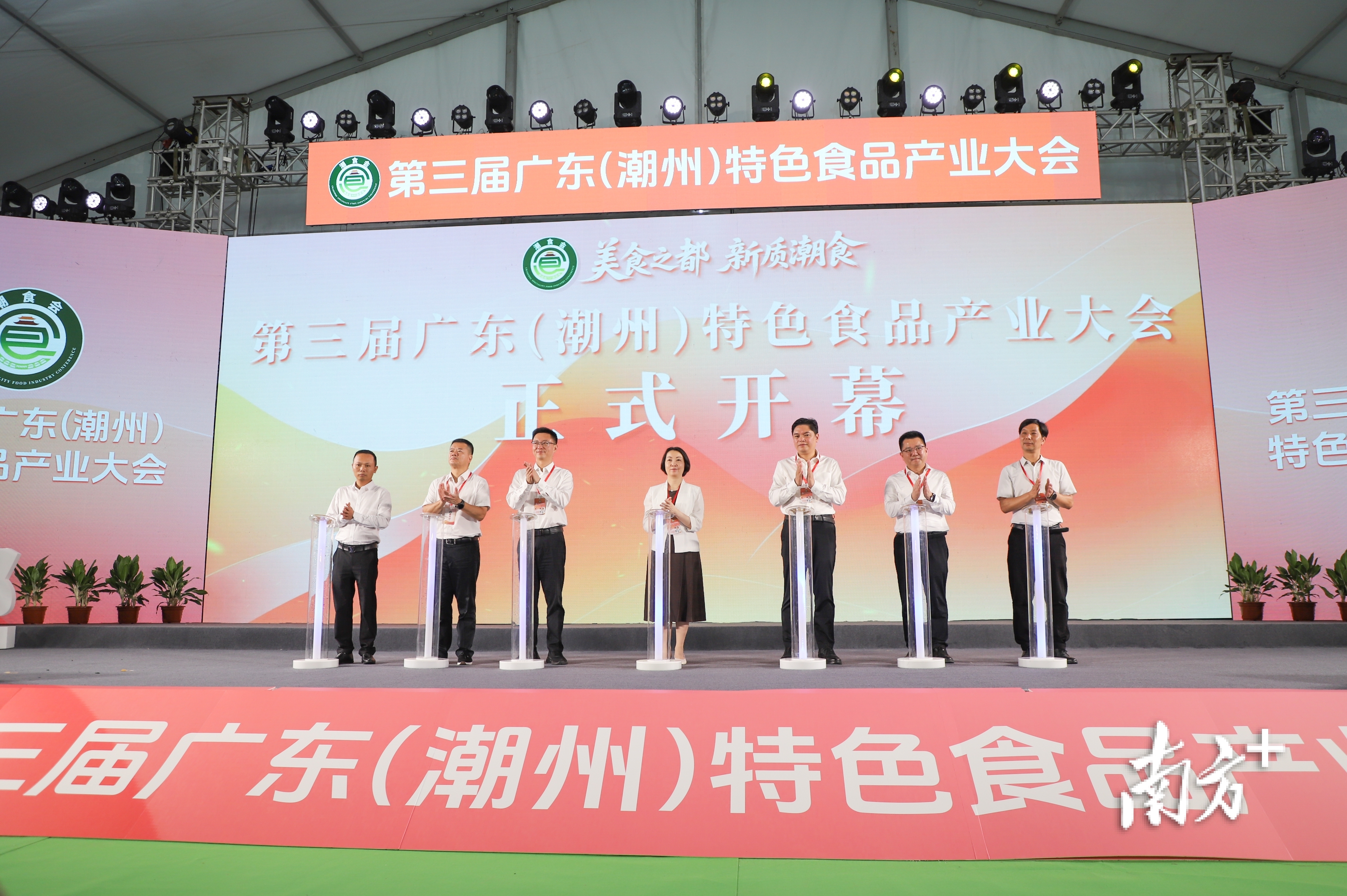 7月17日上午,第三届广东(潮州)特色食品产业大会(简称“潮食会”)在潮州市潮安区东山湖产业园正式开幕。本届展会首次实现全市场化运作,以“美食之都、新质潮食”为主题,8万平方米展馆吸引了超千家企业参展,涵盖食品、包装、机械全产业链,集中展示超万款创新产品。