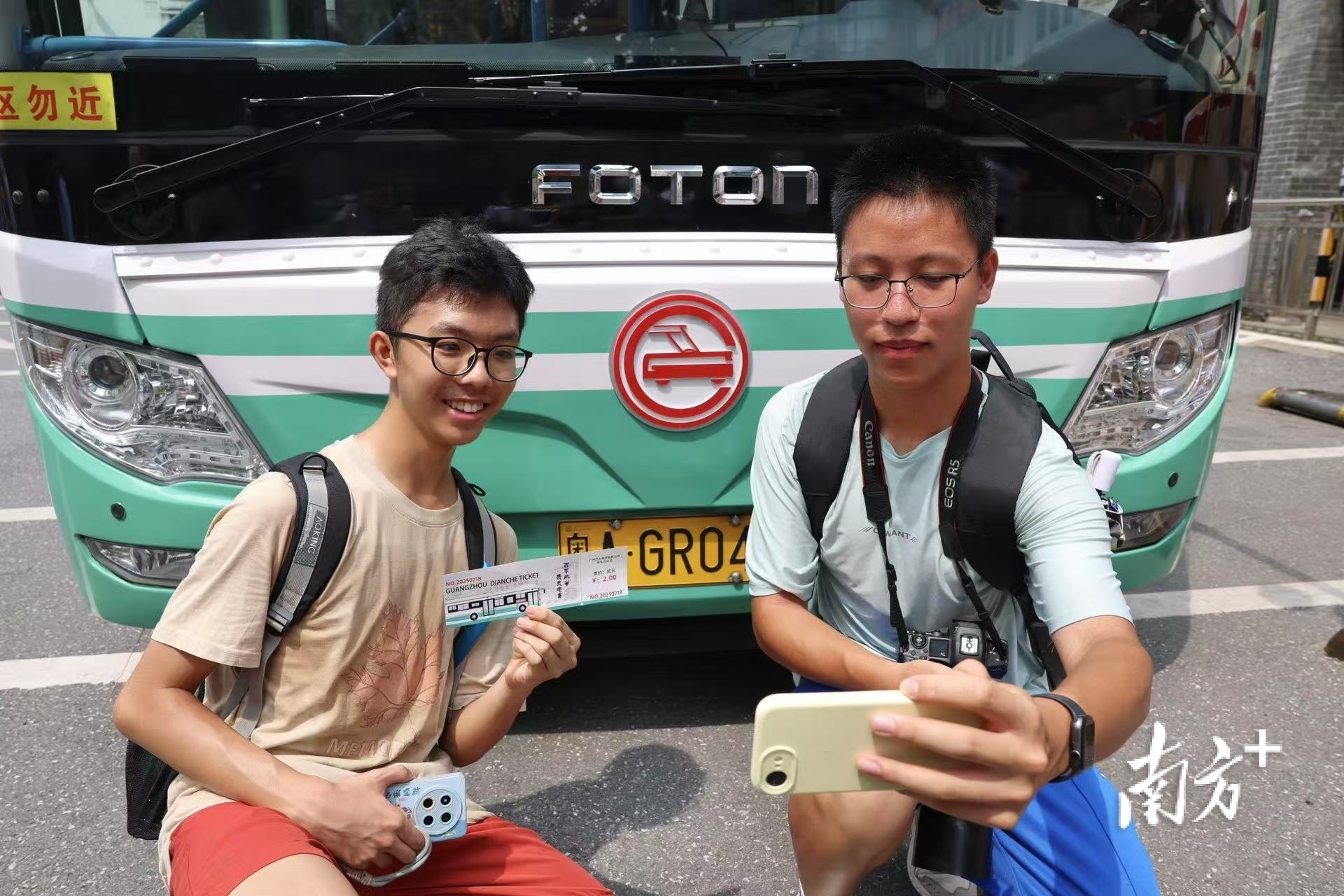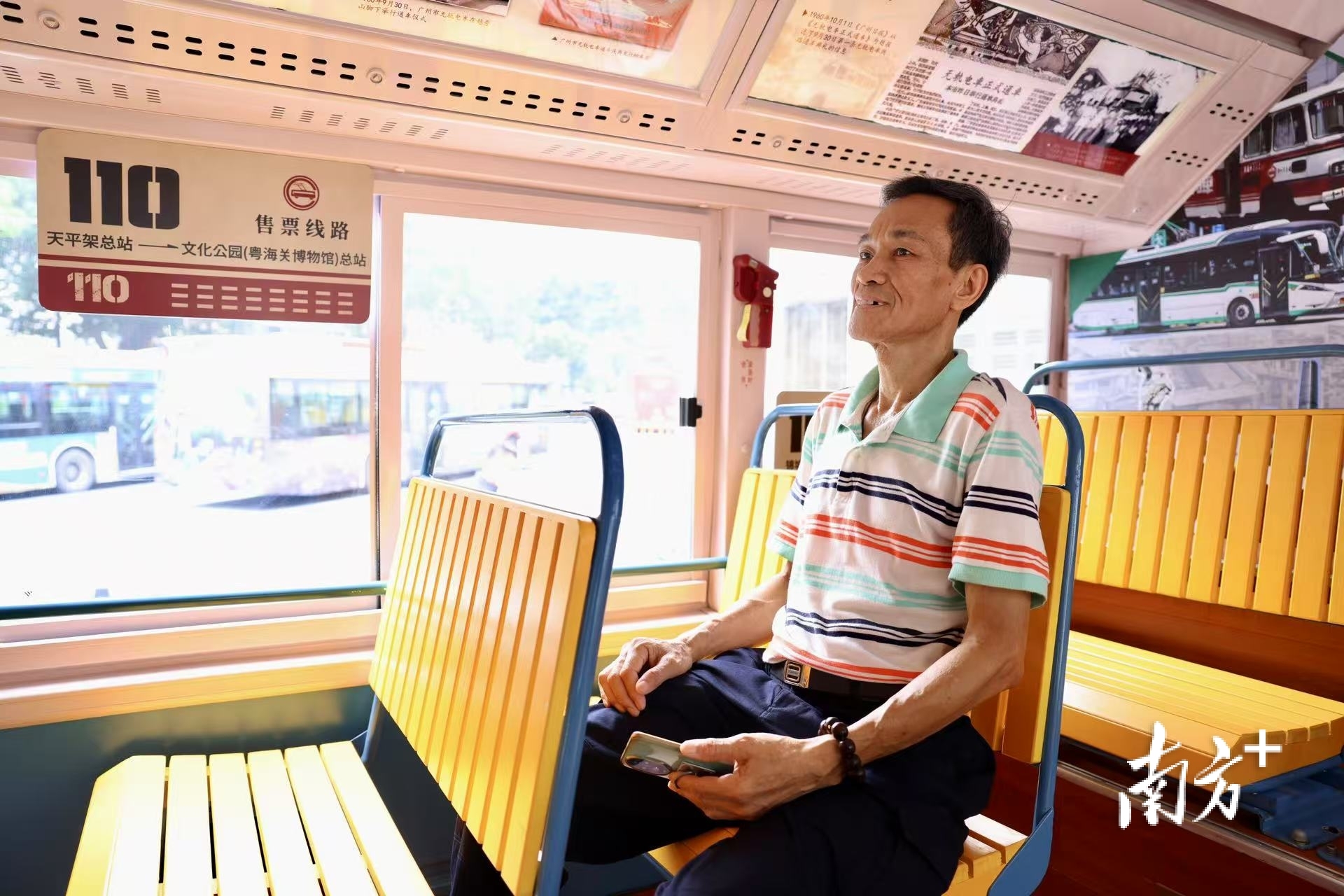 随后,大家共同乘坐复古电车,车辆按照107线行驶,开启了一段特别的“移动穿粤之旅”:在充满复古气息的车厢内,欣赏窗外的现代羊城,车内是回忆,车外是美景。乘客陈先生感慨:“坐在这里面看外面的高楼大厦,时空交错的感觉特别奇妙。”