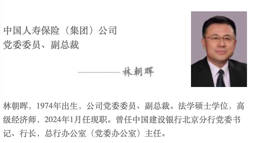 而接任广发银行党委书记的林朝晖则是1974年出生,法学硕士学位。2024年1月起任中国人寿保险(集团)公司党委委员,2024年3月起任副总裁,现兼任中国人寿保险(海外)股份有限公司董事长。曾任中国建设银行北京市分行党委书记、行长。