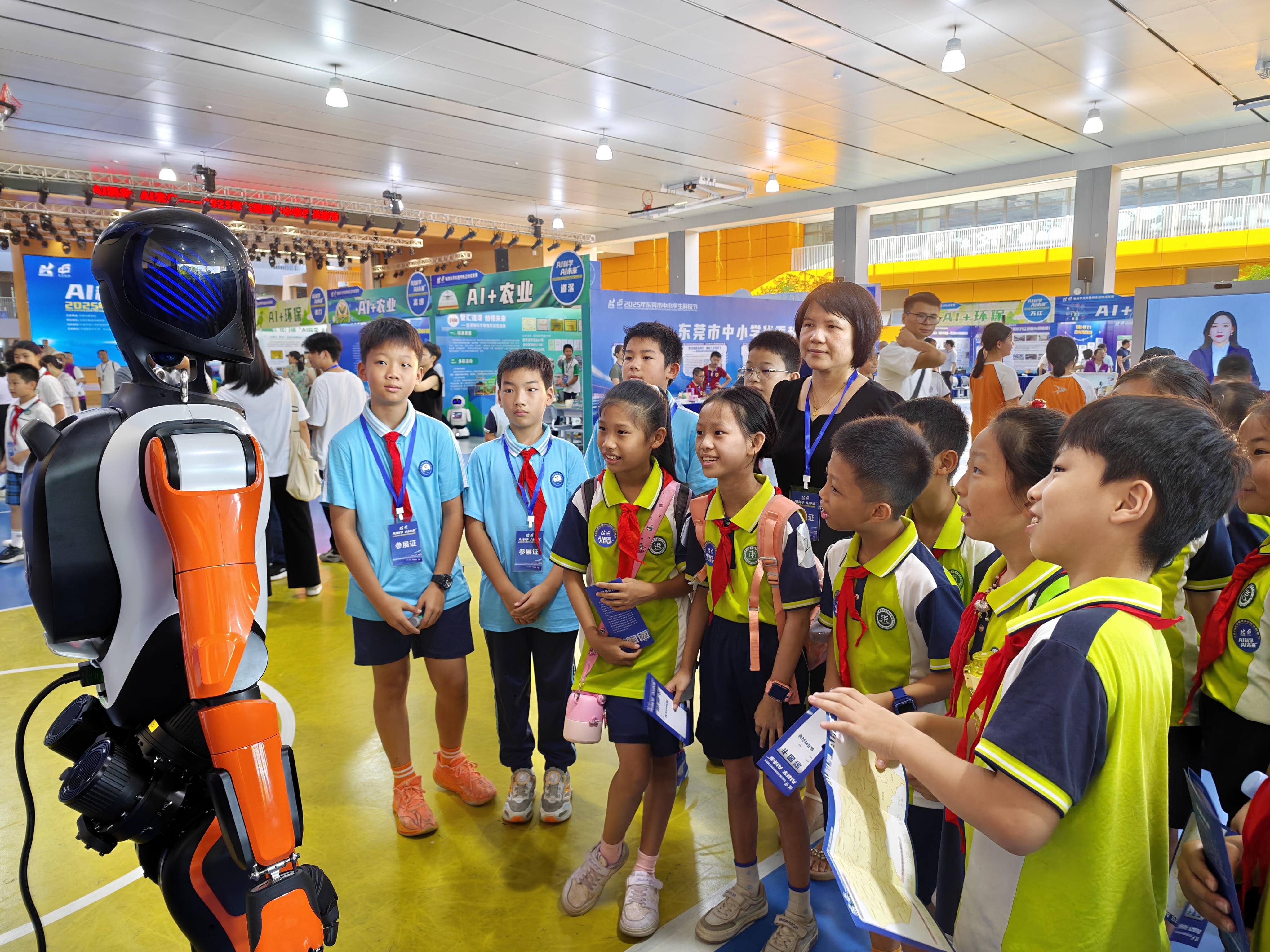 黄江镇主会场设有展区,为全市中小学生提供体验、展示项目平台。值得一提的是,黄江镇本土高新企业广东领益智造股份有限公司是本次活动的唯一受邀企业。领益机器人成为会场的引流点,吸引众多师生驻足体验;展区内,智能机器人灵活舞动,精密制造模型引人惊叹,充分展现“东莞智造”的科技实力。