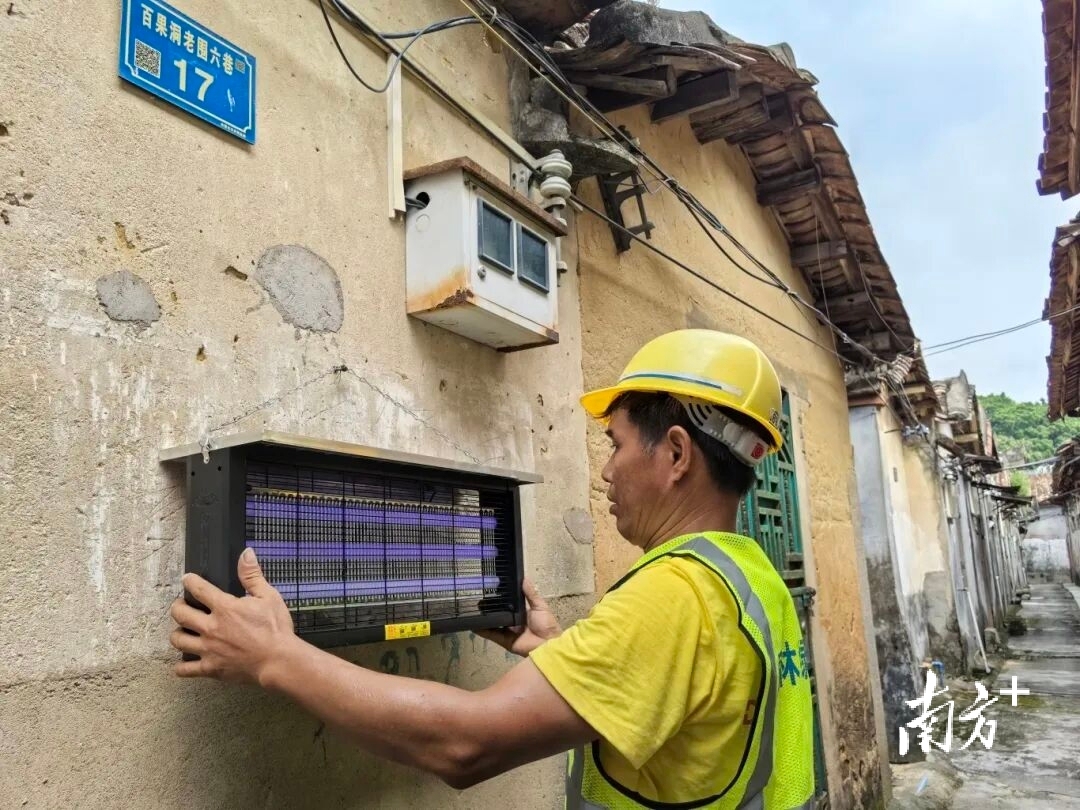 百果洞社区工作人员黄倩婷说:“我们社区以老围为试点,先购置了50台灭蚊灯,加装在根据群众反映的一些成蚊比较多的地方。”