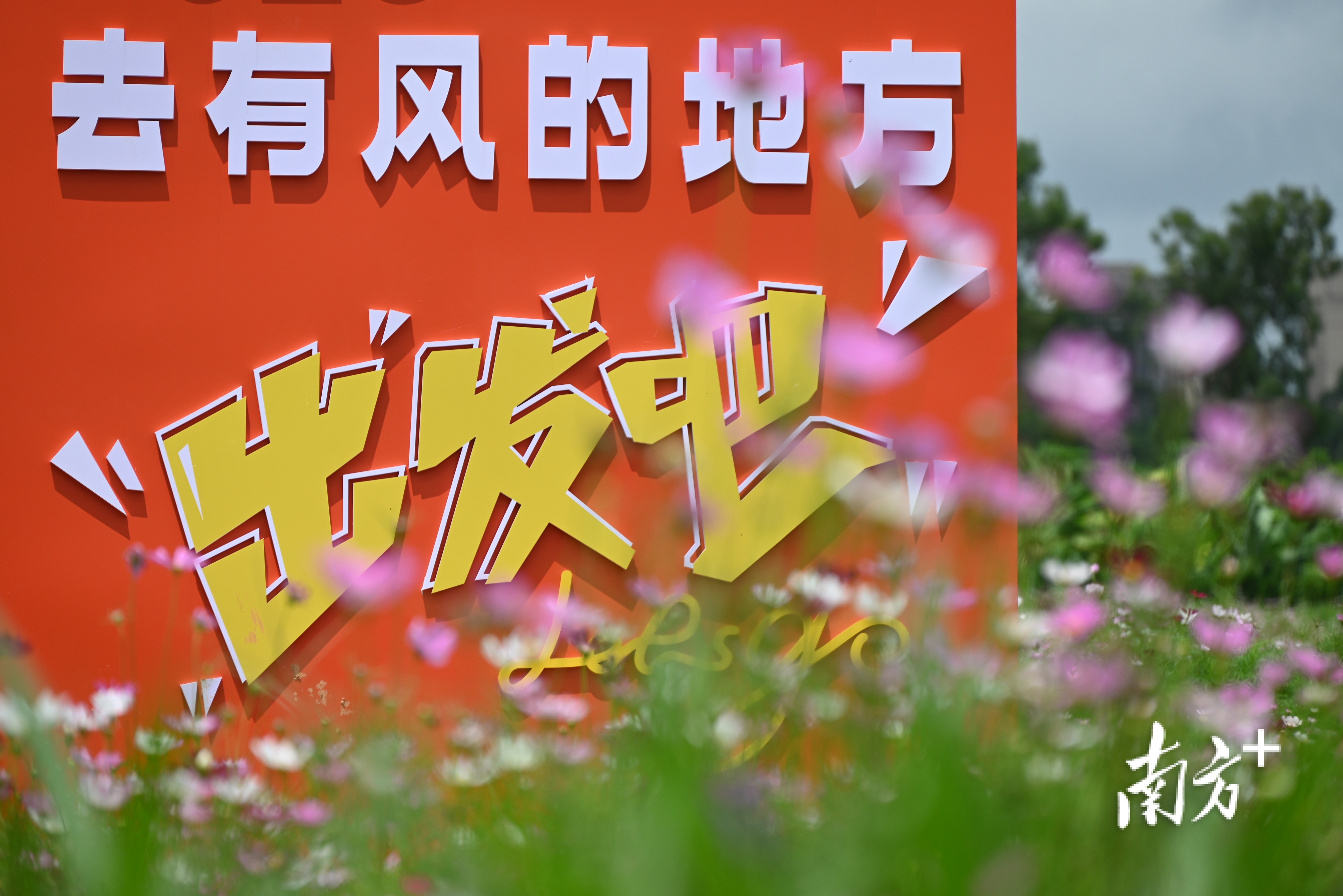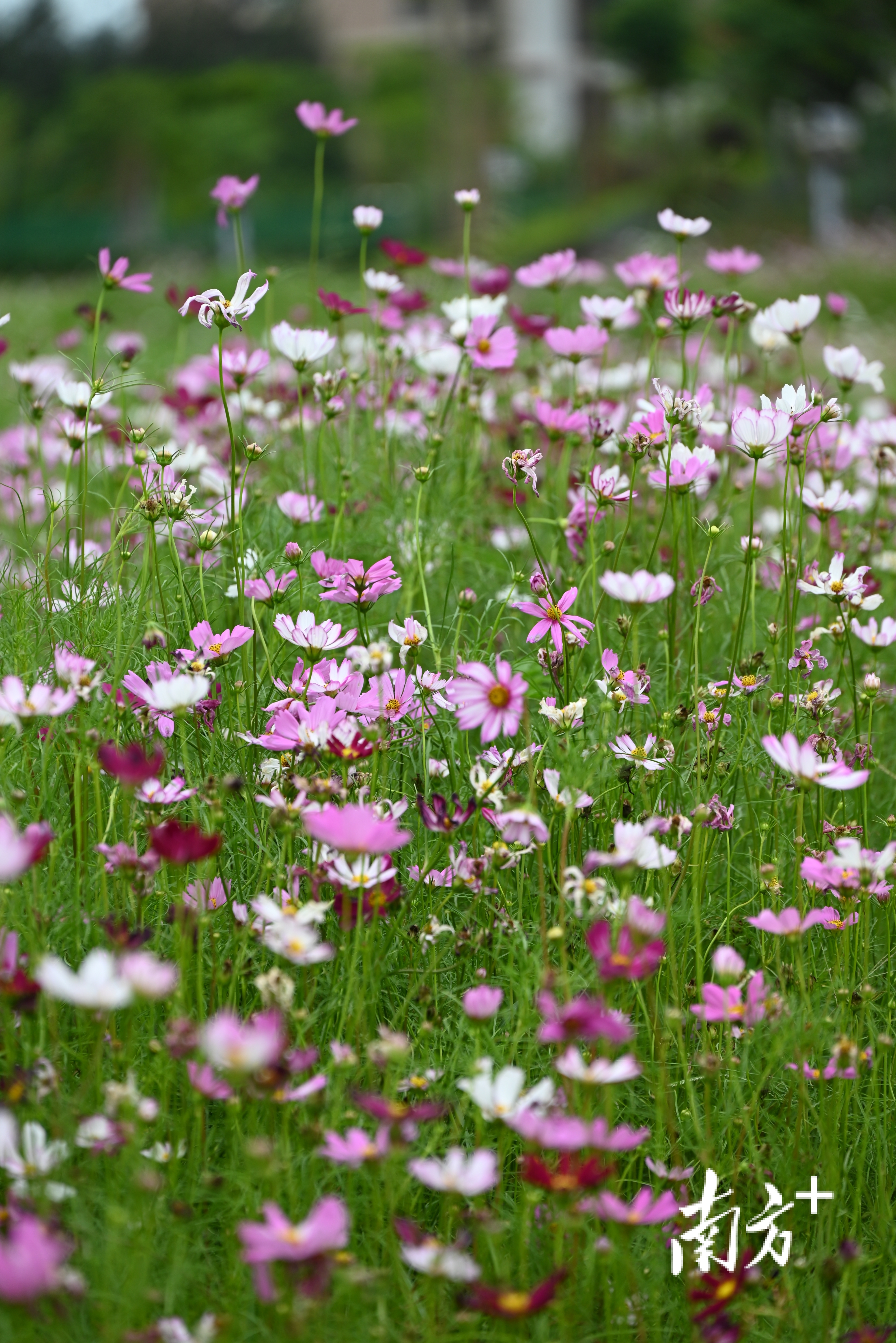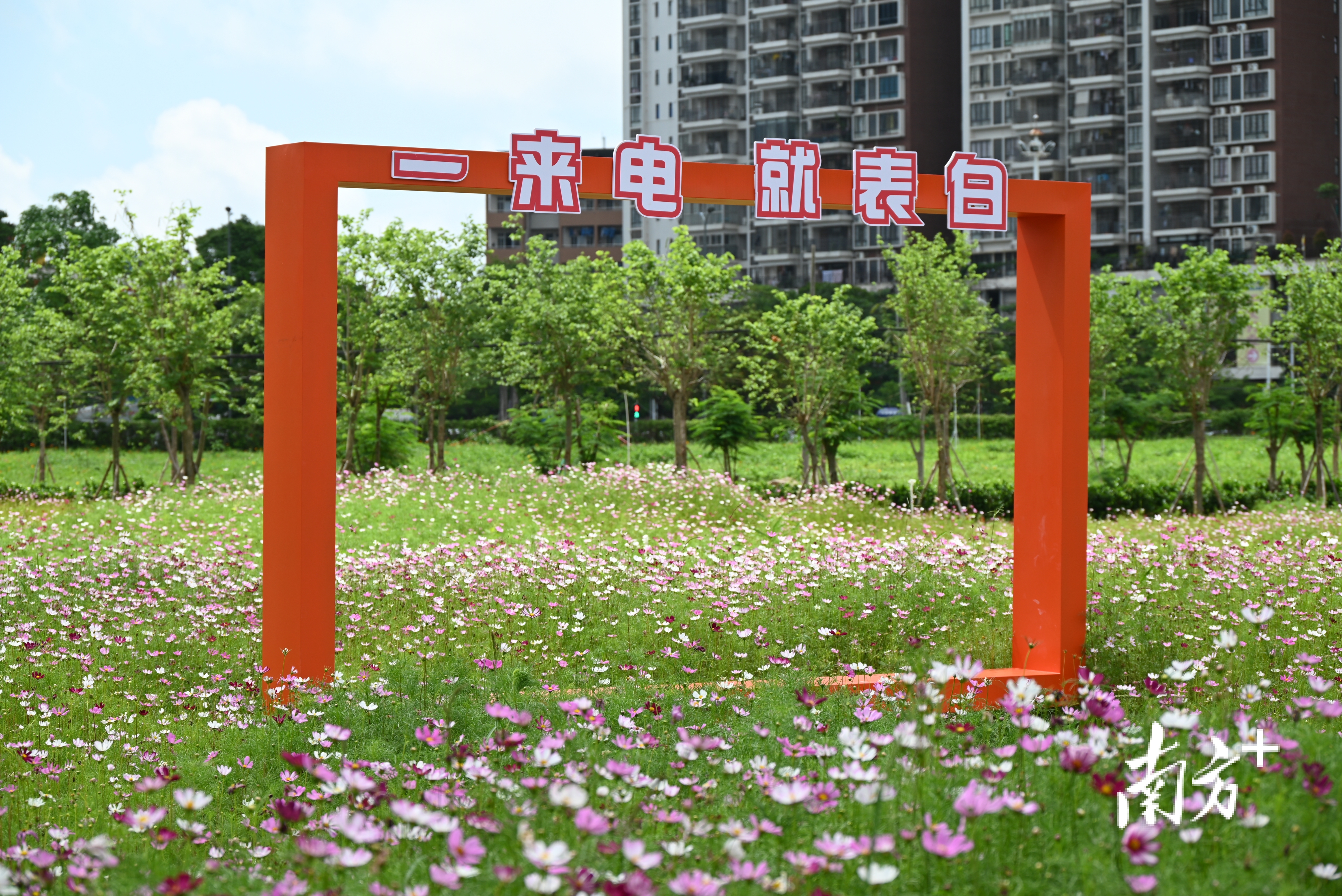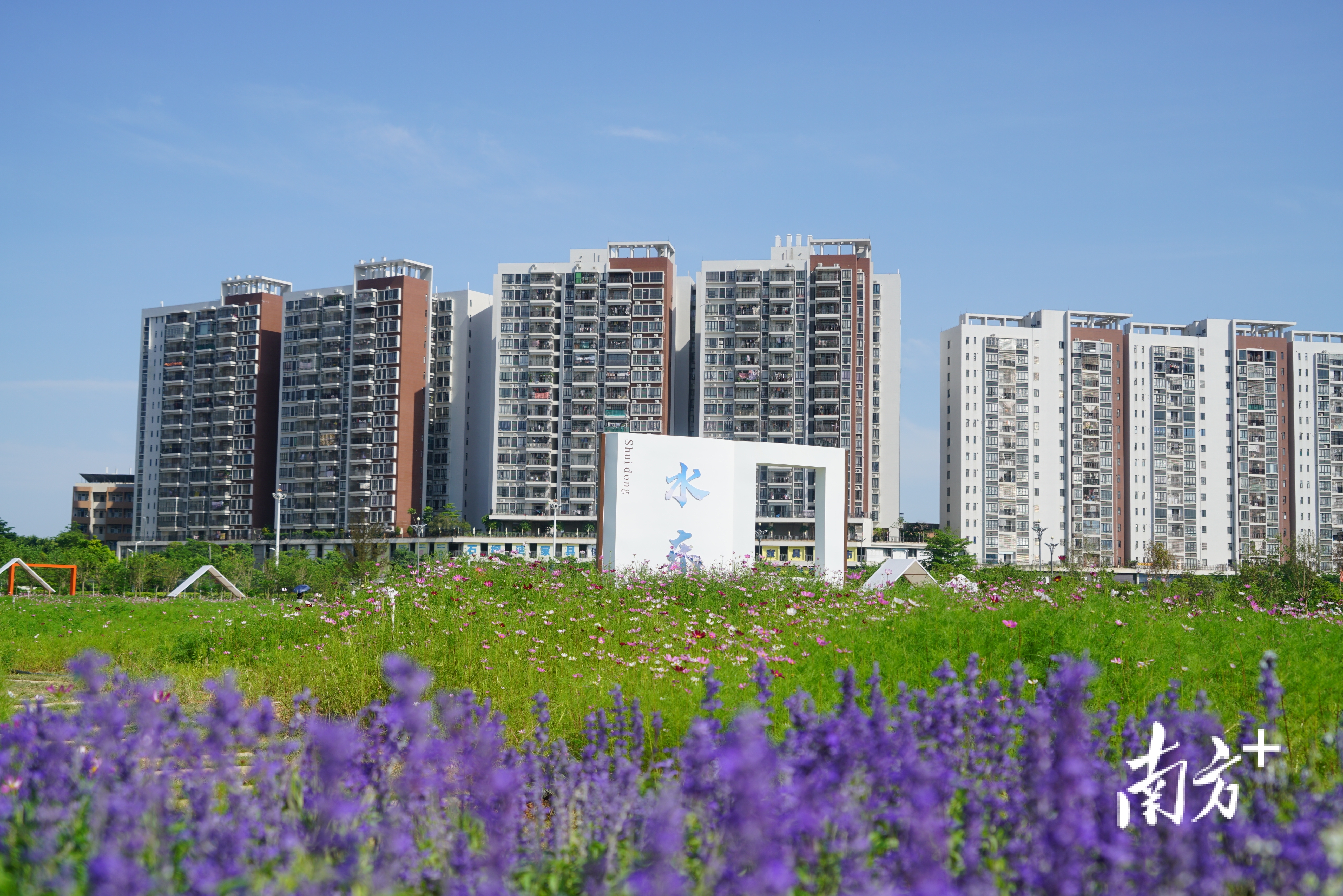 这是一片百亩花海,位于水东街道寨头村(水东大道与海滨大道交会处西北侧),名为花城广场。