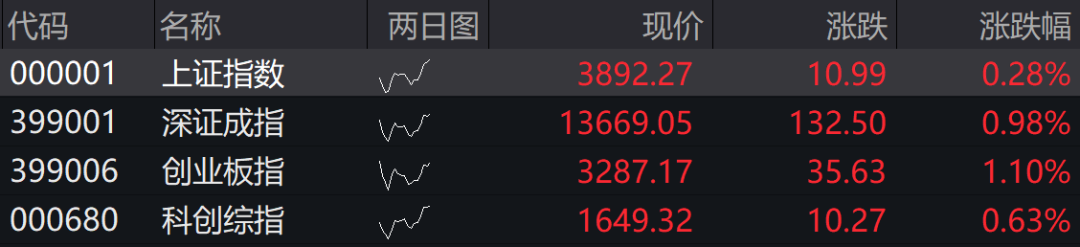 沪指高开0.28%,深成指高开0.98%,创业板指高开1.10%,科创综指高开0.63%。