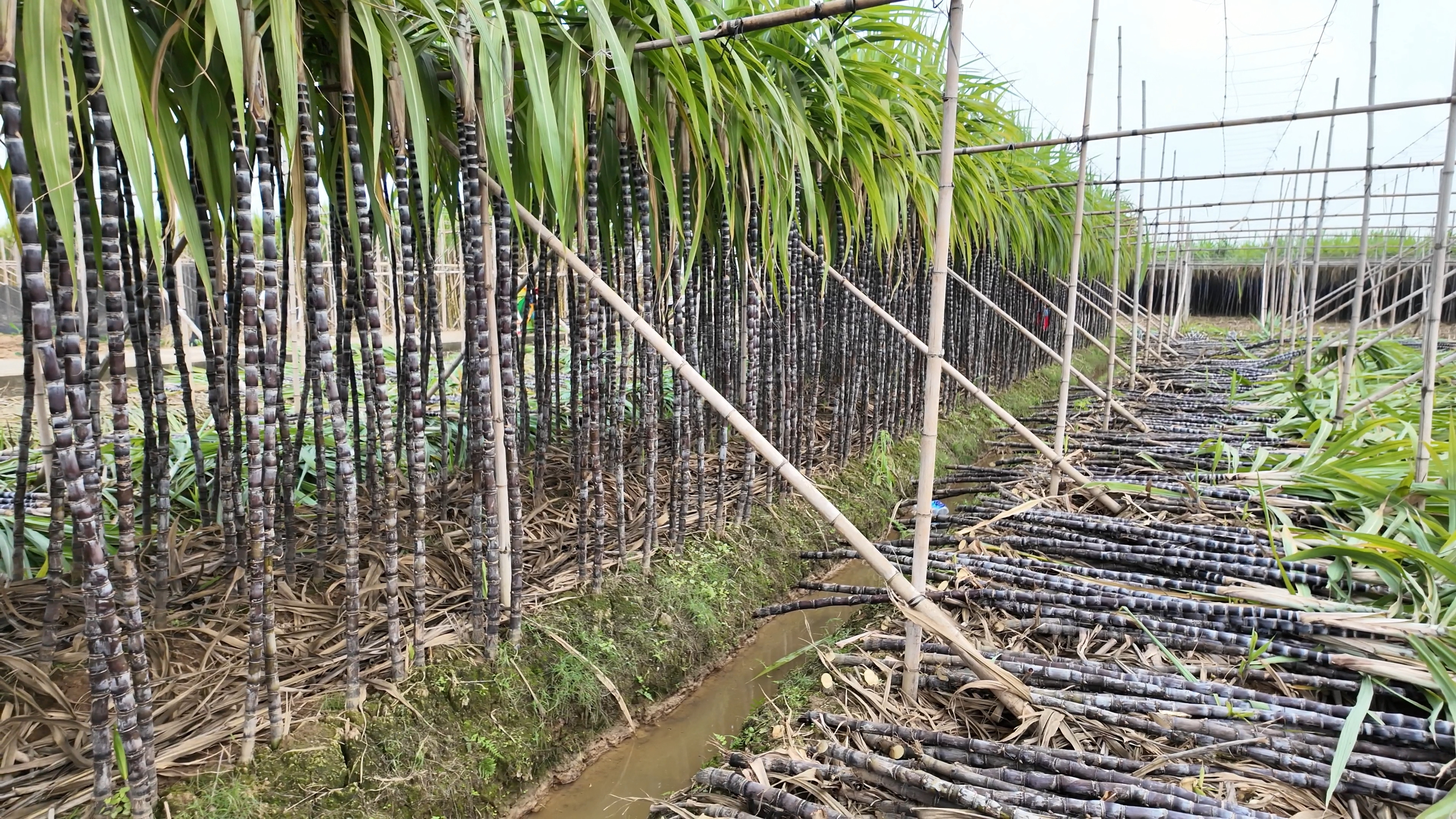 大片成熟的黑皮甘蔗粗壮饱满 南方+ 景子妍 拍摄