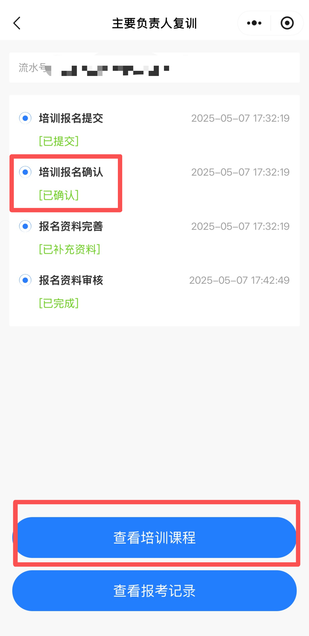 机构约在3个工作日内完成审核。审核通过后,报名状态将更新为“已确认” (可在【个人中心】-【我的报名】中跟踪进度),系统自动解锁视频课程,可点击【查看培训课程】开始线上培训并完成报名信息完善。