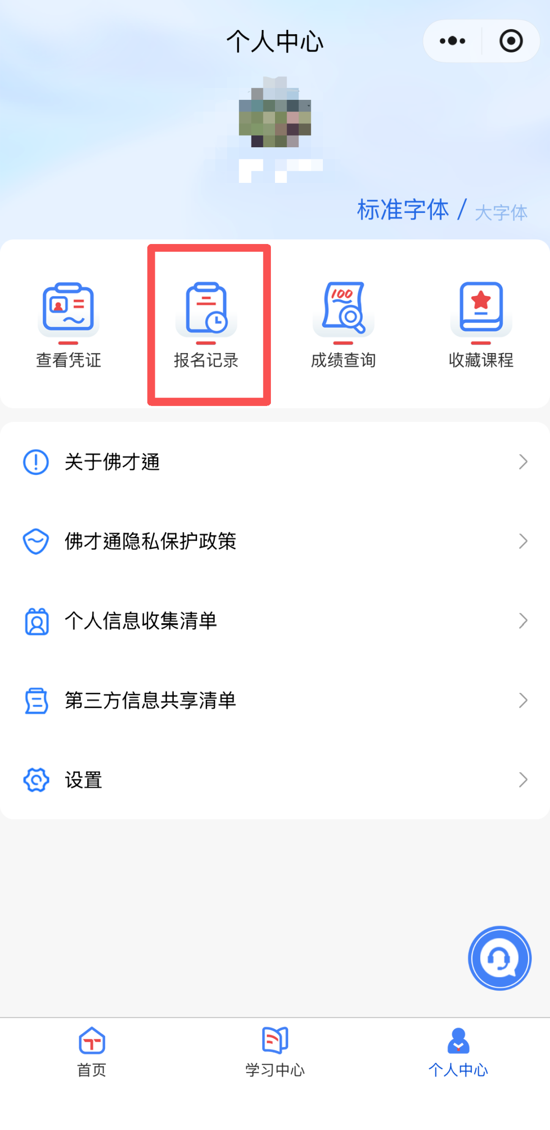 佛才通微信小程序【个人中心】→【成绩查询】,输入相关信息即可查到最新或历史成绩。
