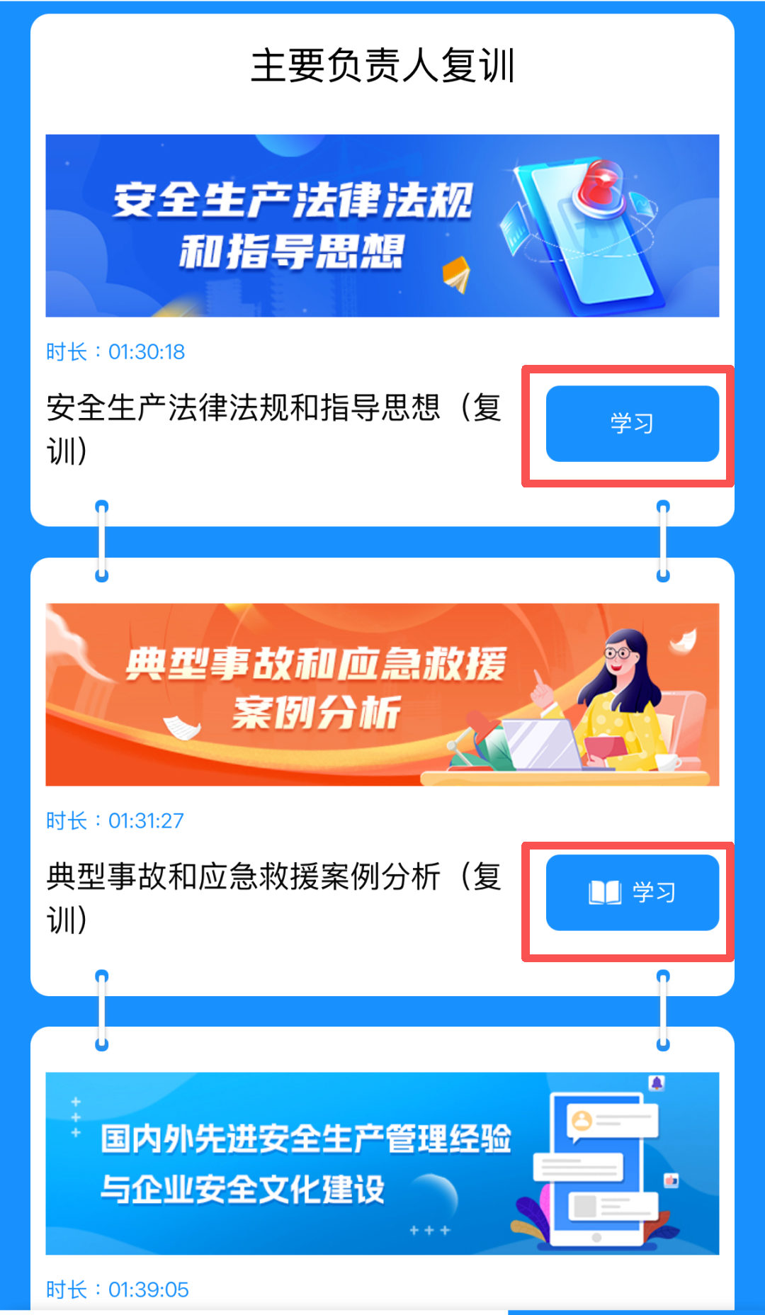 当报名状态更新为“已确认”后,学员即可在课程详情页点击【学习】按钮,观看线上培训视频。完成线上培训后,系统会自动发放学习凭证。