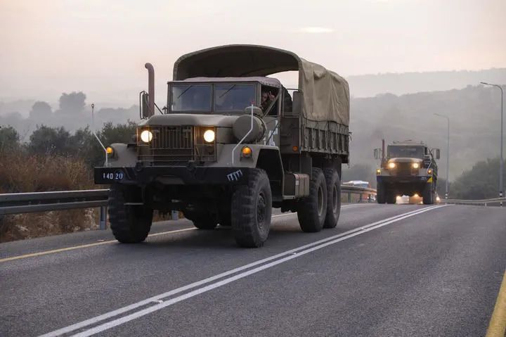 10月8日,以色列军用车辆在北部靠近黎巴嫩边境区域的道路上行驶。新华社发(阿亚尔·马戈林摄/基尼图片社)
