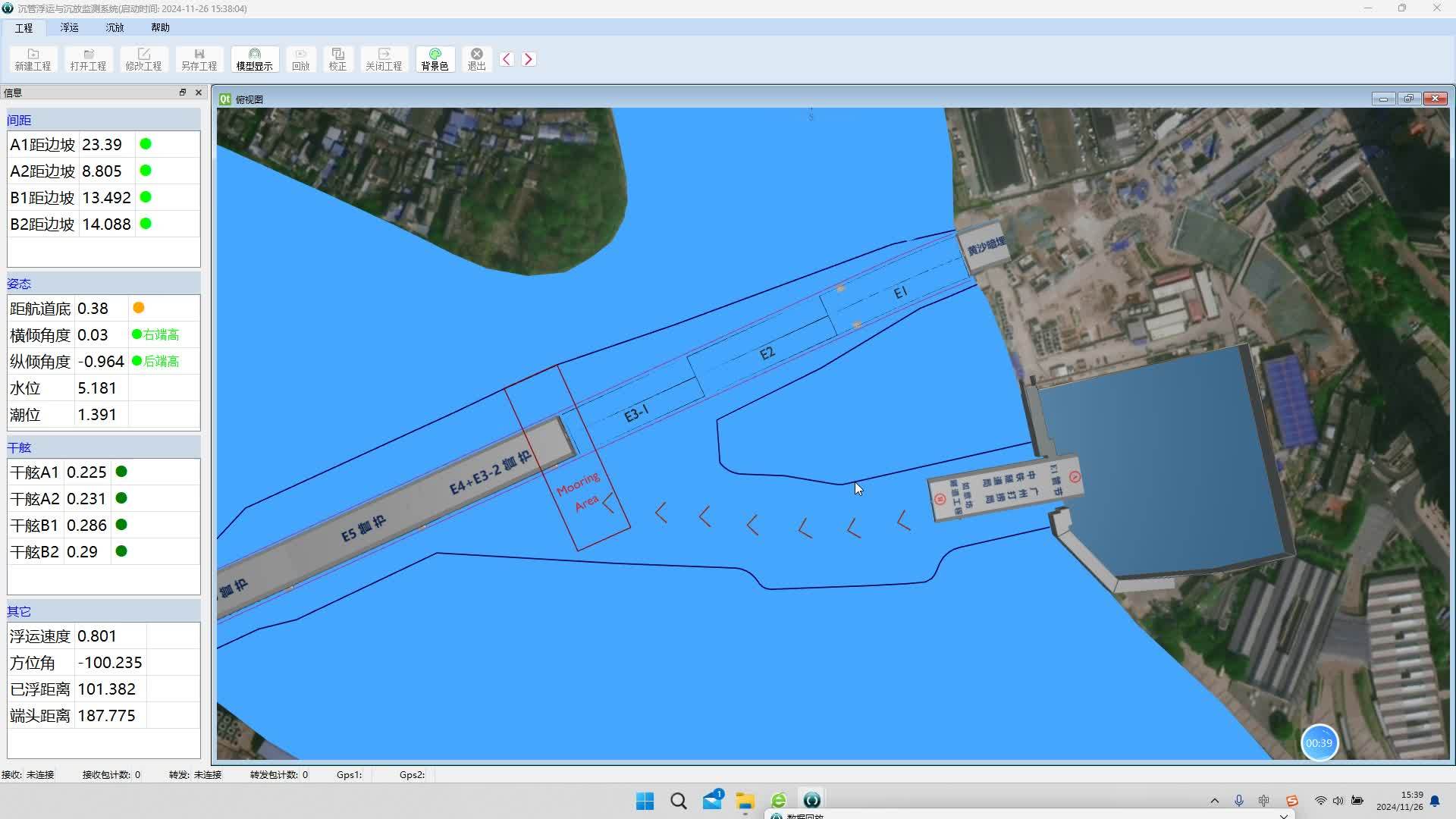 此次浮运,项目创新采用内河沉管交汇处沉管绞移浮运安装技术、长期河流冲刷及潮汐影响条件下的沉管基槽开挖等技术,有效解决复杂水域下沉管管节浮运沉放安装难题,提高施工安全性,实现提质增效。建立了浮运全过程的可视化模型,可在终端智慧屏幕上实时展现沉管的角度、距离以及位置,对接精度达到毫米级别,为现场决策指挥提供了重要辅助手段。
