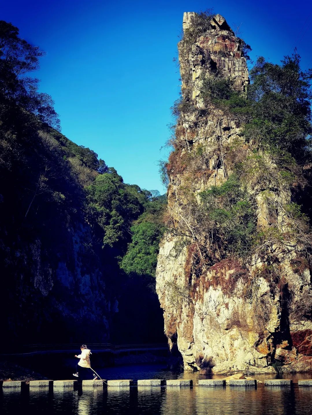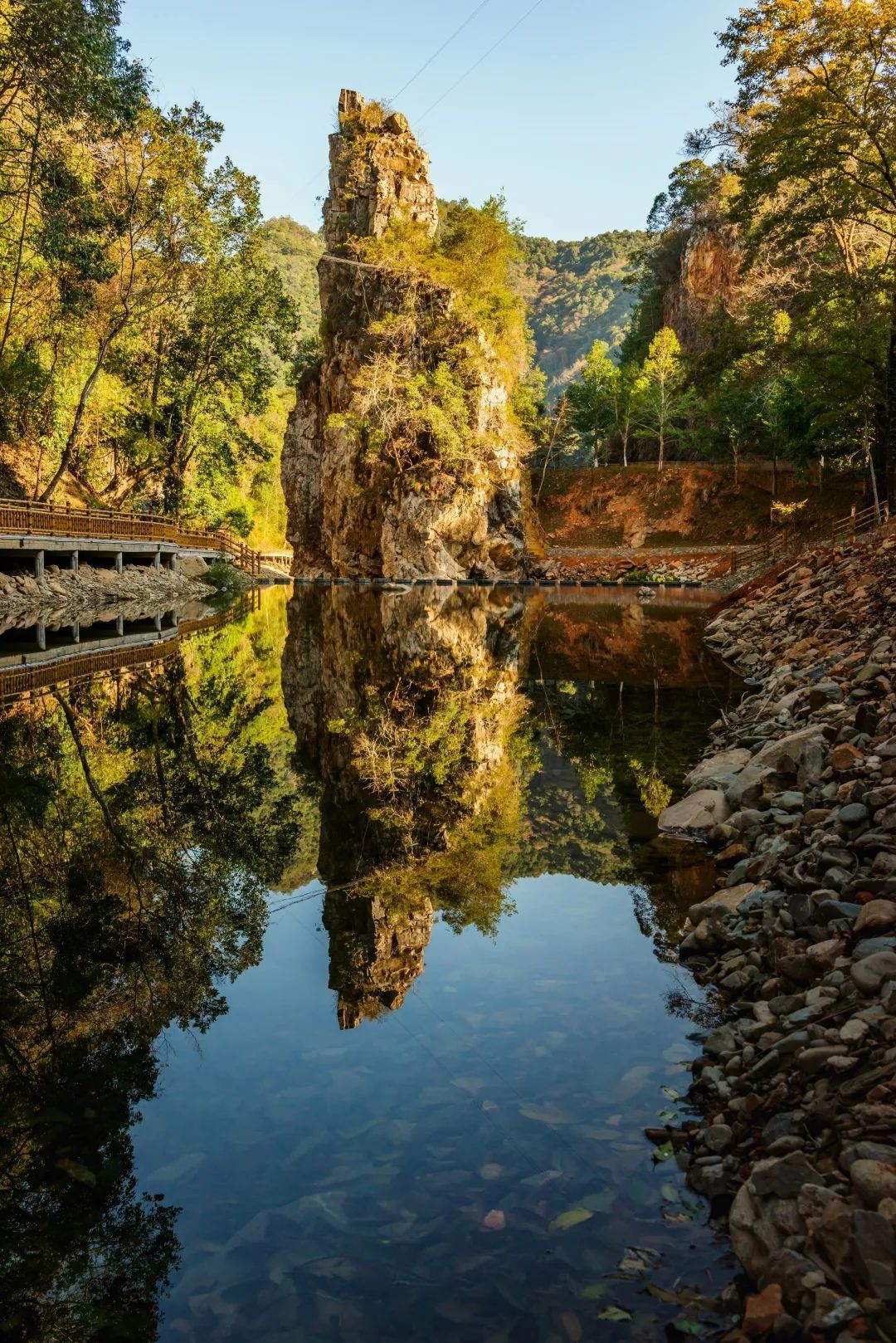 其于潭水深处拔地而起,峻峭挺拔