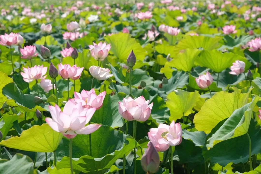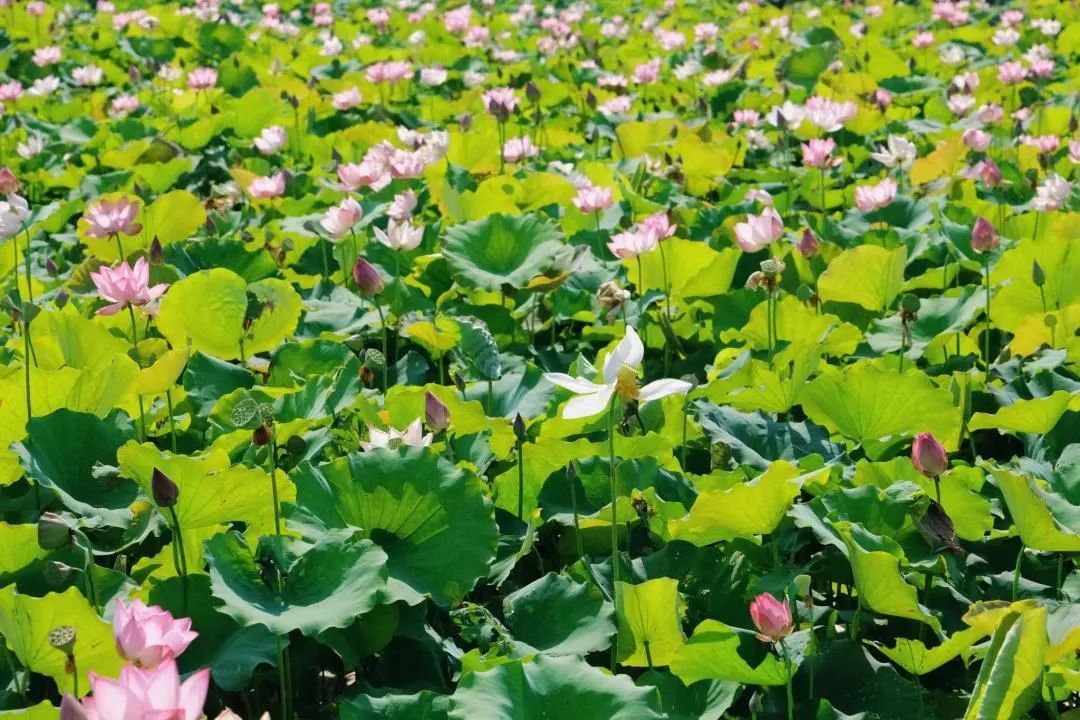 目前,荷花已经进入盛花期