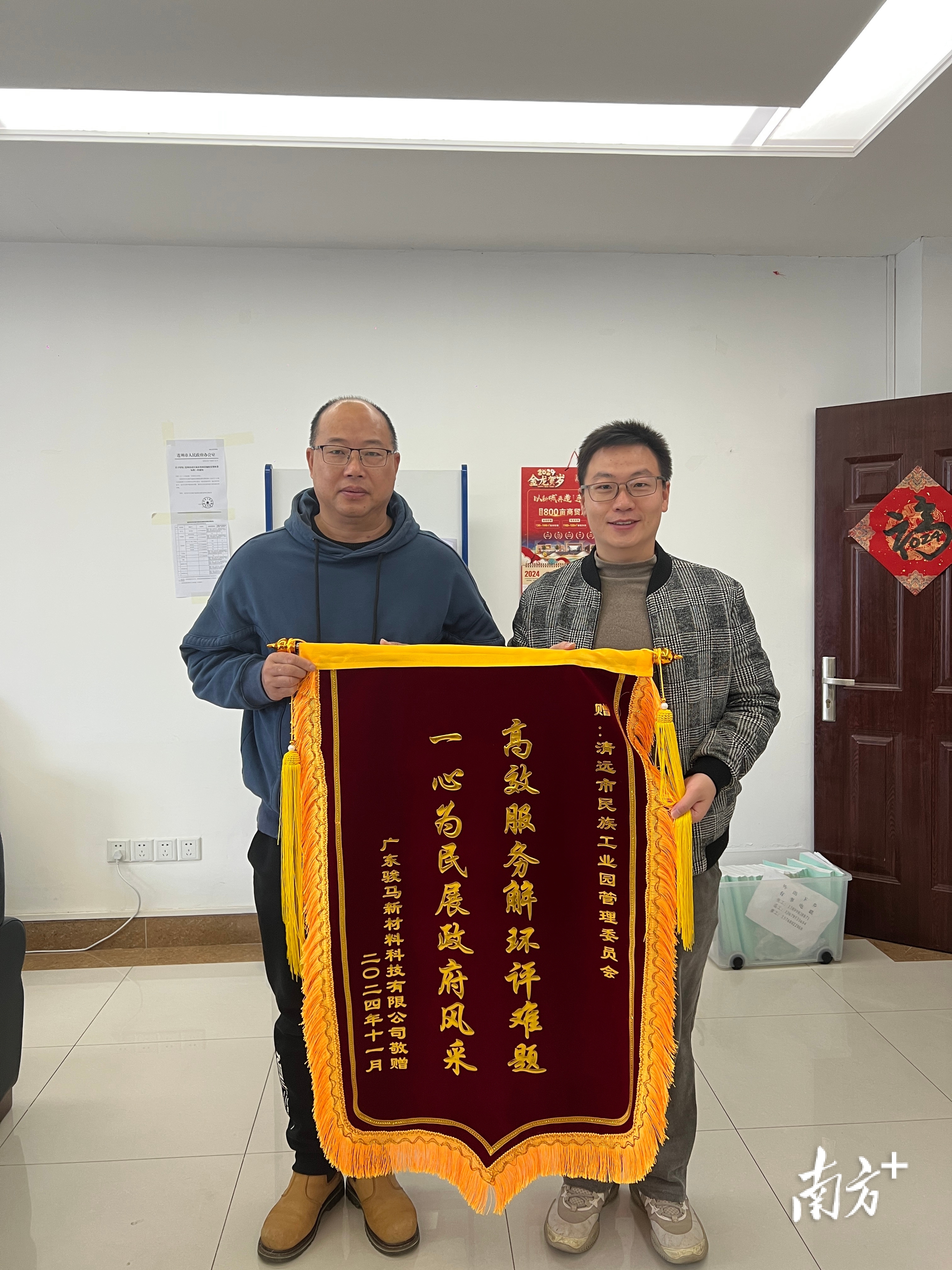 “高效服务解环评难题,一心为企展政府风采”——2024年11月,广东骏马新材料科技有限公司负责人为清远民族工业园管委会送来这样一面锦旗。原来,该公司在环评申请和组装设备时遇到了瓶颈,园区获悉后急企业所急,为进一步加快助推企业生产,清远民族工业园管委会立即组织职能单位协调解决,帮助公司迅速完成了环评申请和设备组装,使得项目顺利试产。“能提前试产,既节约了成本,也意味着提前带来效益,这得益于园区的贴心服务。”该公司负责人说。