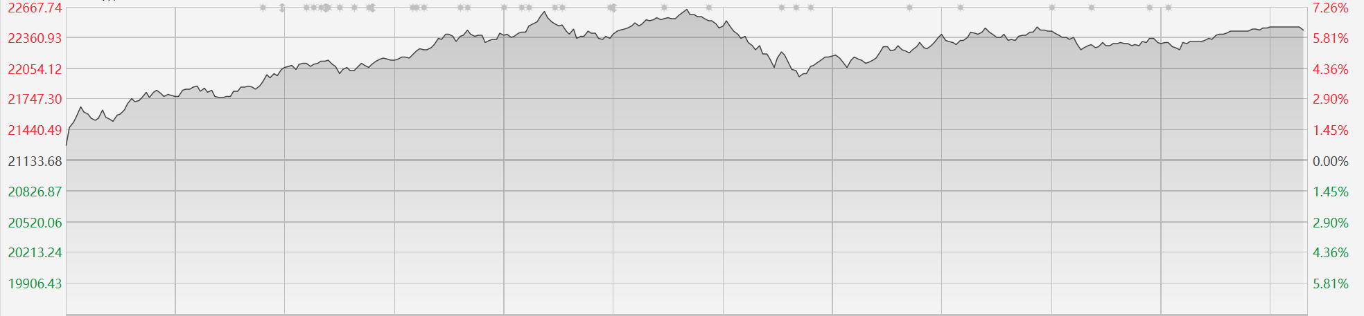 今日港股三大指数集体走强。截至收盘,恒生指数涨6.20%,报收22443.73点;科技指数涨8.53%,报收5157.08点;国企指数涨7.08%,报收8041.27点。