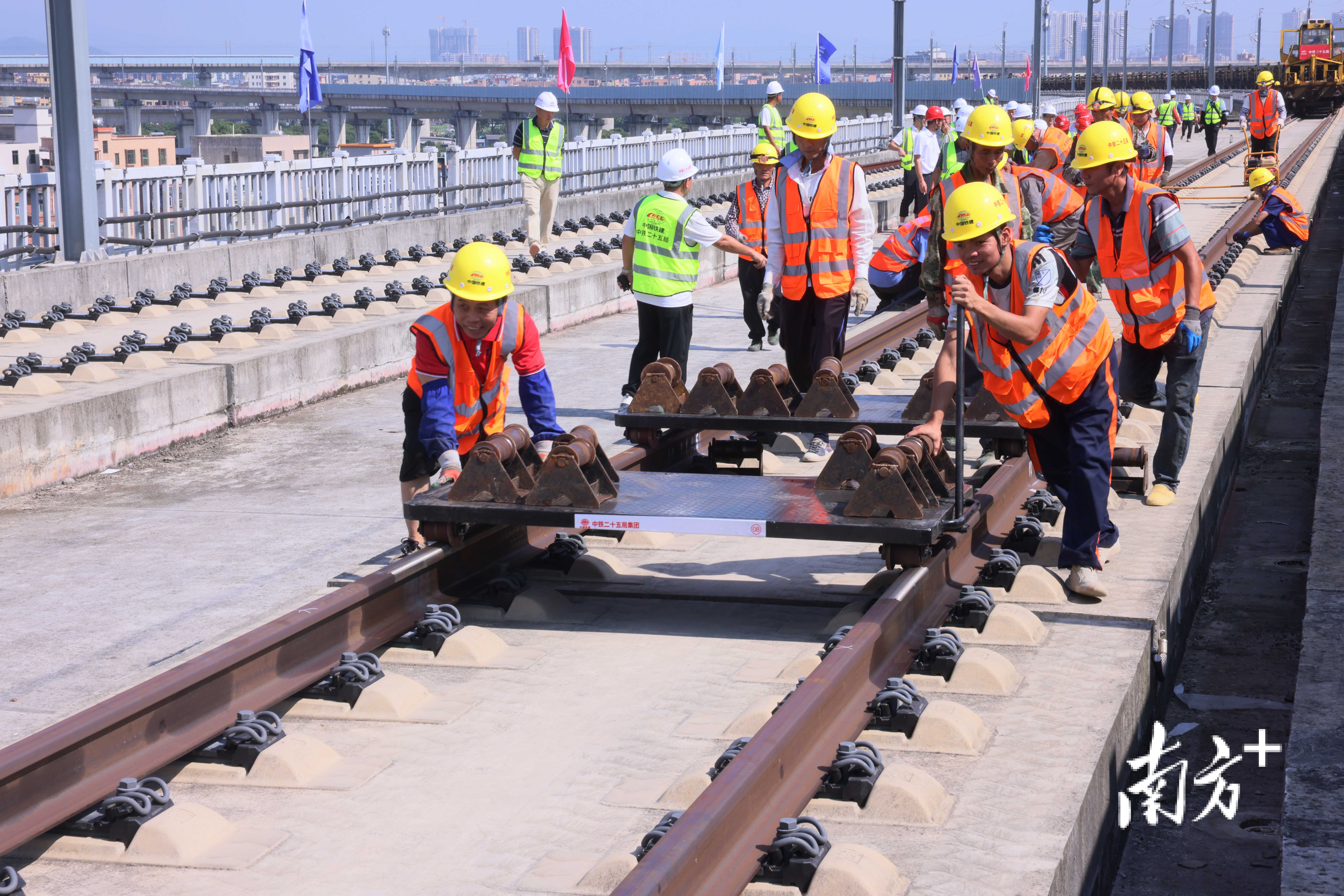 10月14日,广佛东环城际铁路广州南站至白云机场段轨道铺设工程正式进入施工阶段。南方+记者 梁文祥 摄