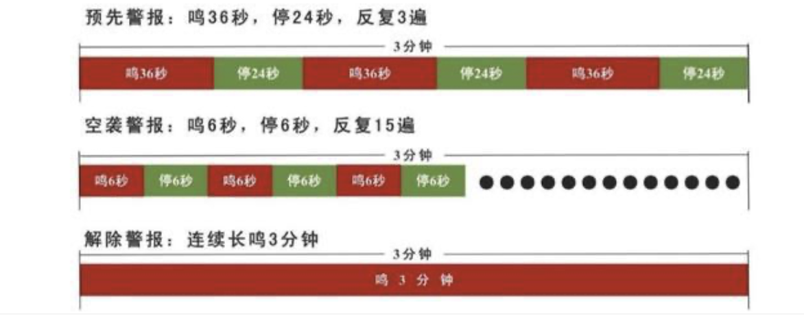 据悉,演习当天10:40-11:03将在全市范围内进行防空警报试鸣:10:40-10:43试鸣预先警报,10:50-10:53试鸣空袭警报,11:00-11:03试鸣解除警报。届时,全市固定警报器、机动防空警报车及部分多媒体多功能防空防灾预警报知系统,同时发放防空警报信号;广州市广播电视台综合频道和新闻资讯广播(FM96.2MHz)、金曲音乐广播(FM102.7MHz)、经济交通广播(FM106.1MHz)频道、广州地铁电视将同步发放防空警报信号;中国电信广州分公司、中国移动广州分公司、中国联通广州分公司及广州市突发事件预警信息发布系统、广州市甚高频智能防灾应急预警系统,将以手机短信息、微信、微博等方式,适时发布防空警报试鸣信息。