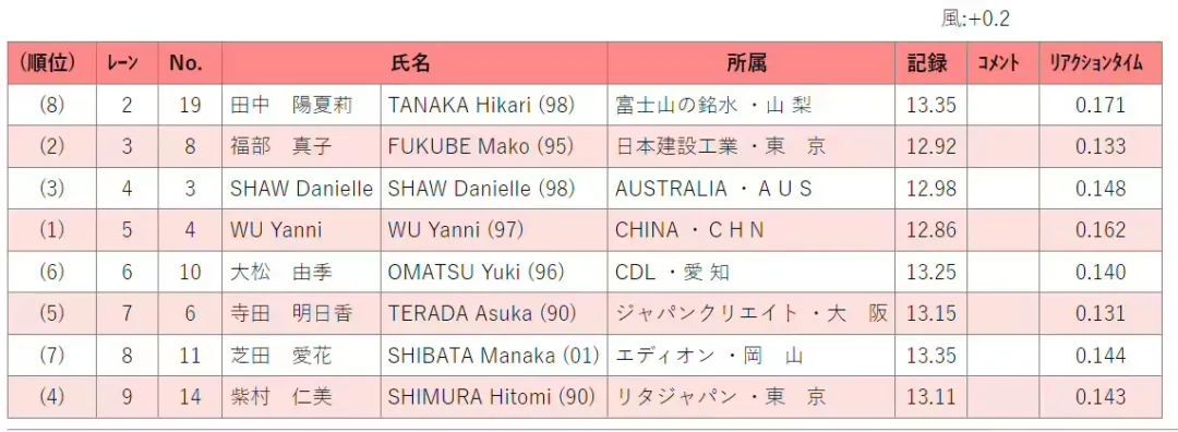 本站比赛所有参赛选手中,吴艳妮的实力占据一定优势,主要竞争对手基本都来自日本。在上午结束的预赛中,她就以12秒91的成绩轻松打开了13秒的关口,本赛季首度达成这一成绩。预赛中只有两名选手跑进了13秒,吴艳妮更是轻松排名第一。