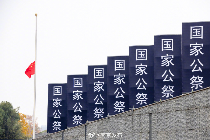 我们为南京大屠杀死难同胞下半旗志哀。