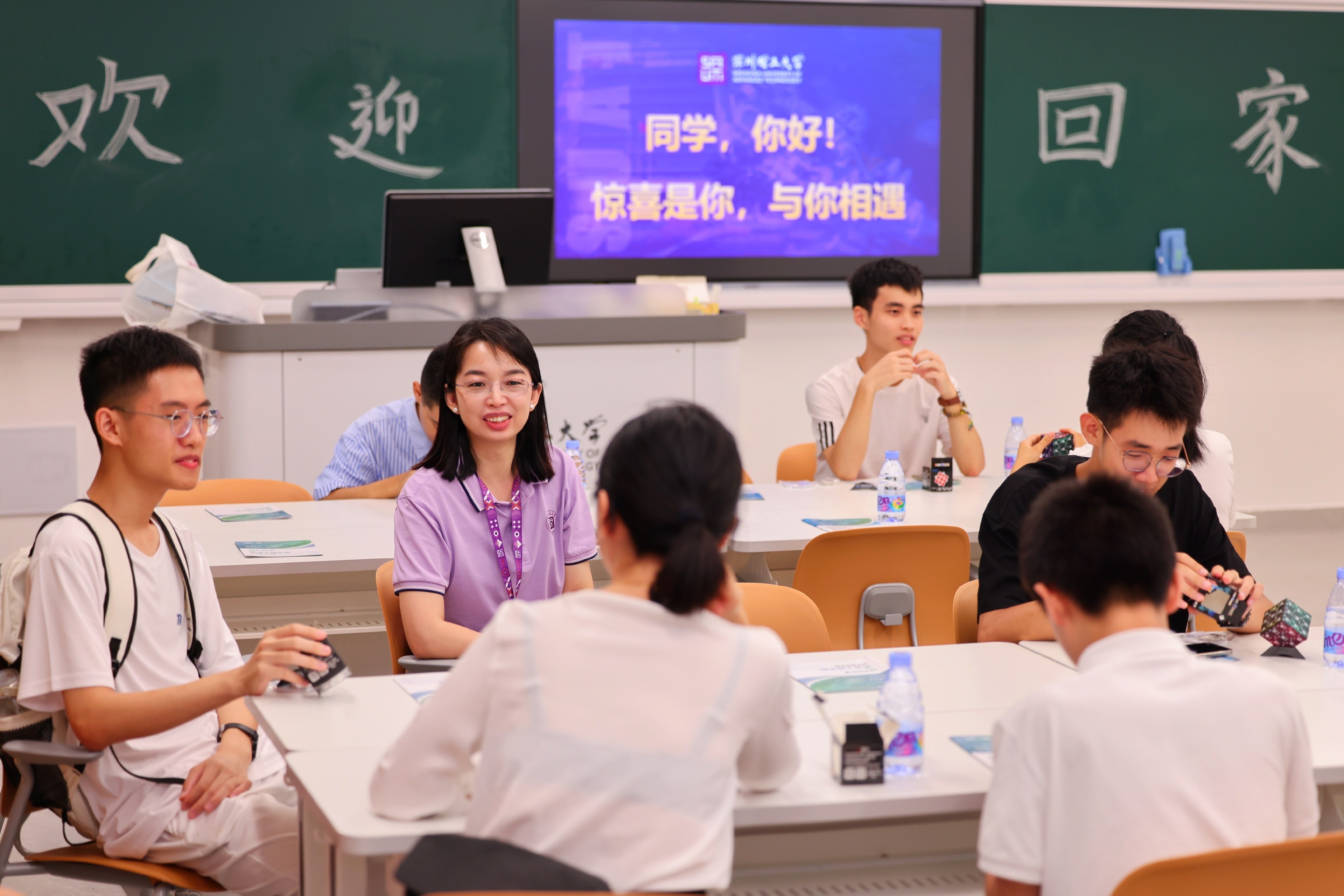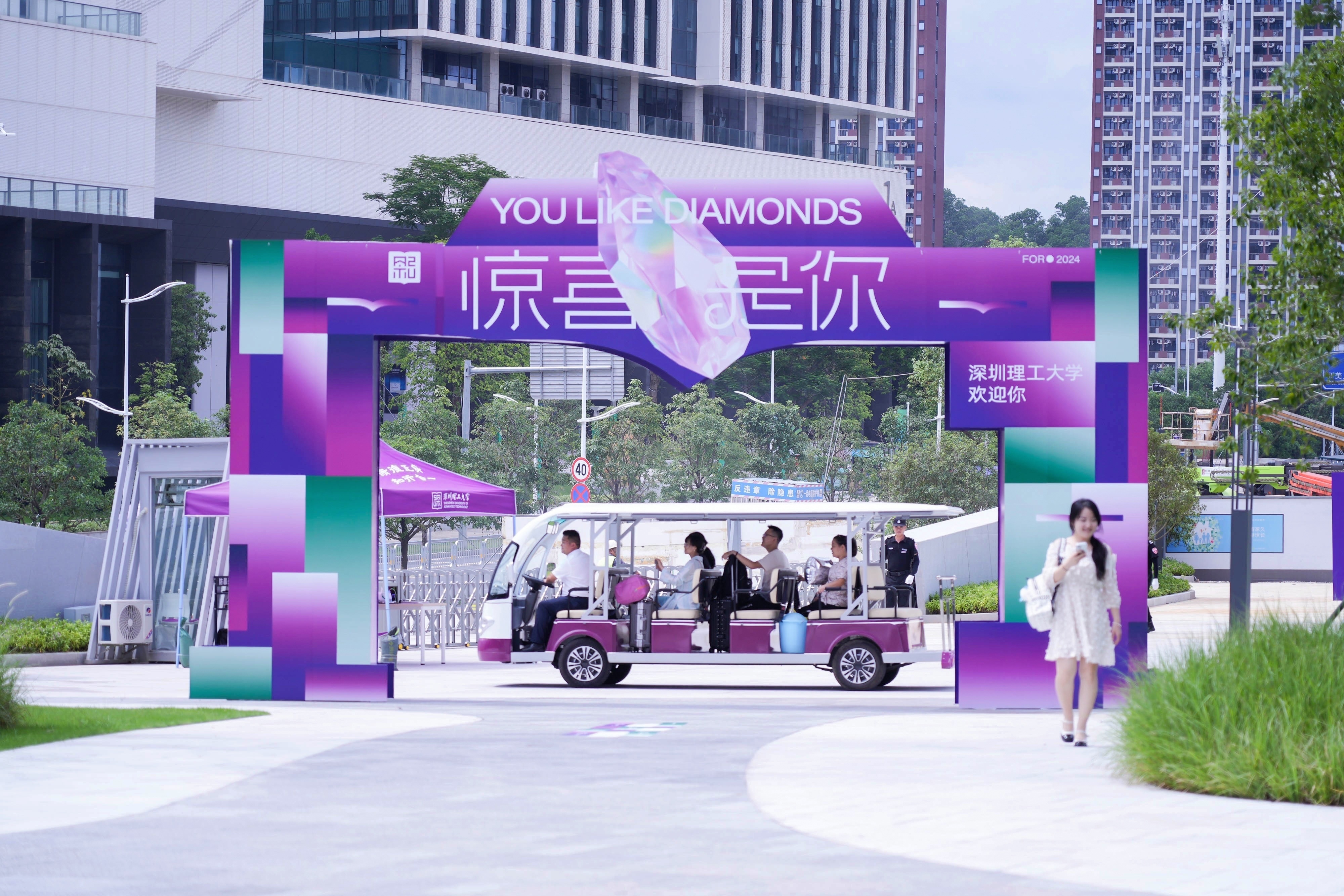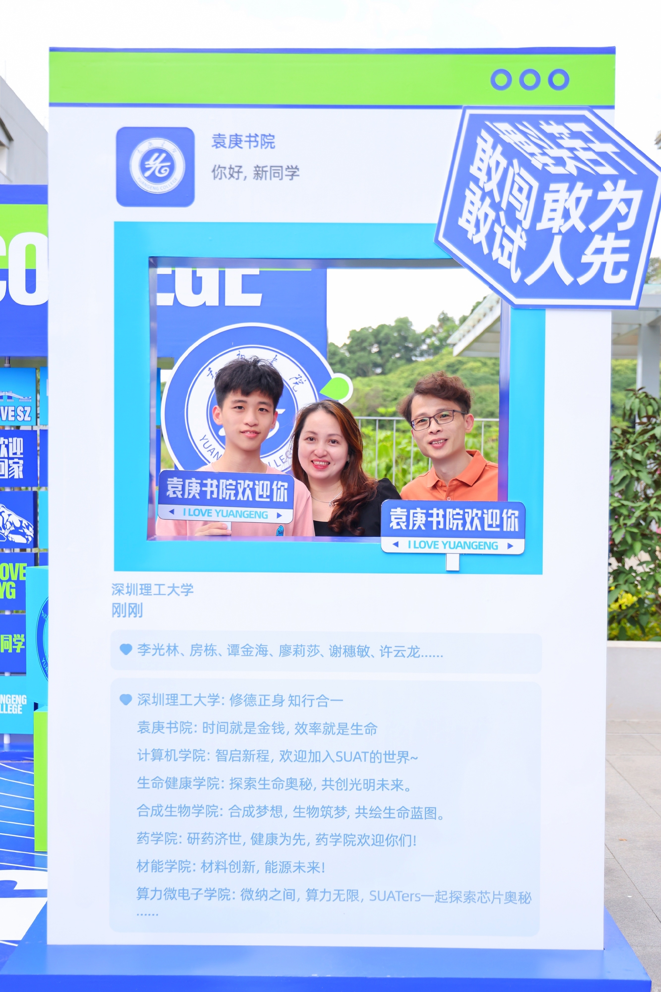 “深圳理工欢迎你”、“惊喜由你创造”、“欢迎创校学生回家”……报到当日,以“惊喜是你”为主题的迎新标语氛围充盈整个校园,青春气息十足。校园内设置了多个新生打卡点和一系列打卡墙,让学生和家长记录下入学的美好瞬间。