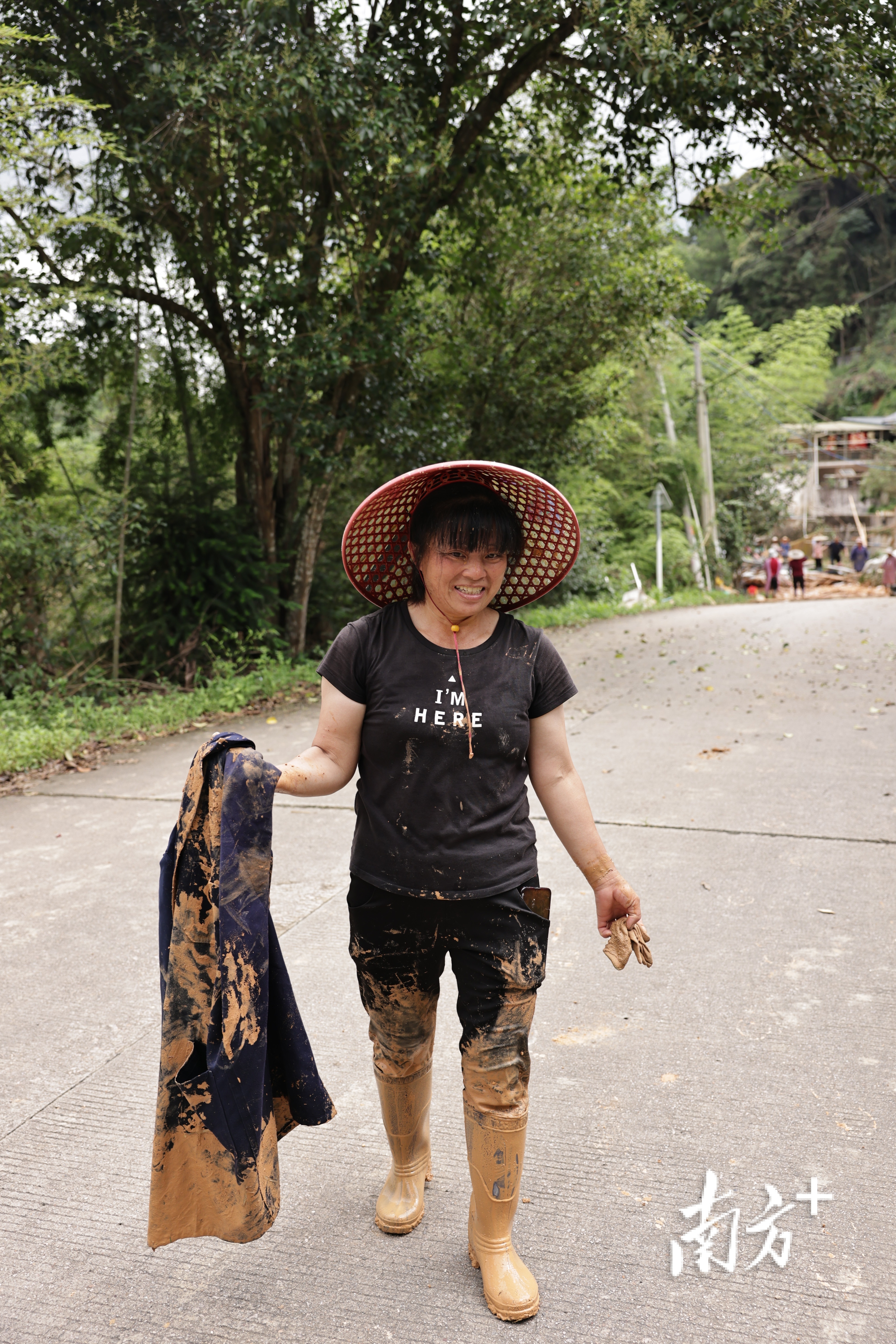 6月19日,罗立芳在清障过程中不慎滑倒,身上沾满污泥。