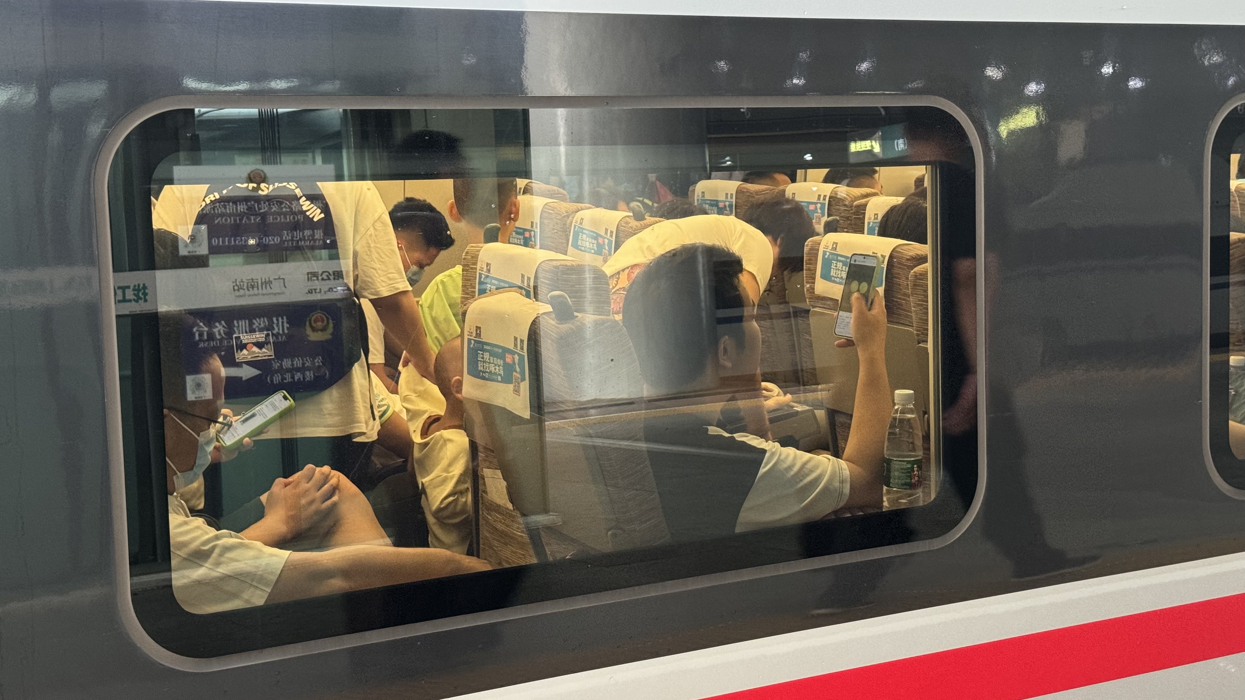 乘客张先生一家今天出发到贵州游玩,他说:“弟弟在贵州办婚礼,贵州的山水非常美丽,空气特别好,这次正好一家人去玩一遍。”