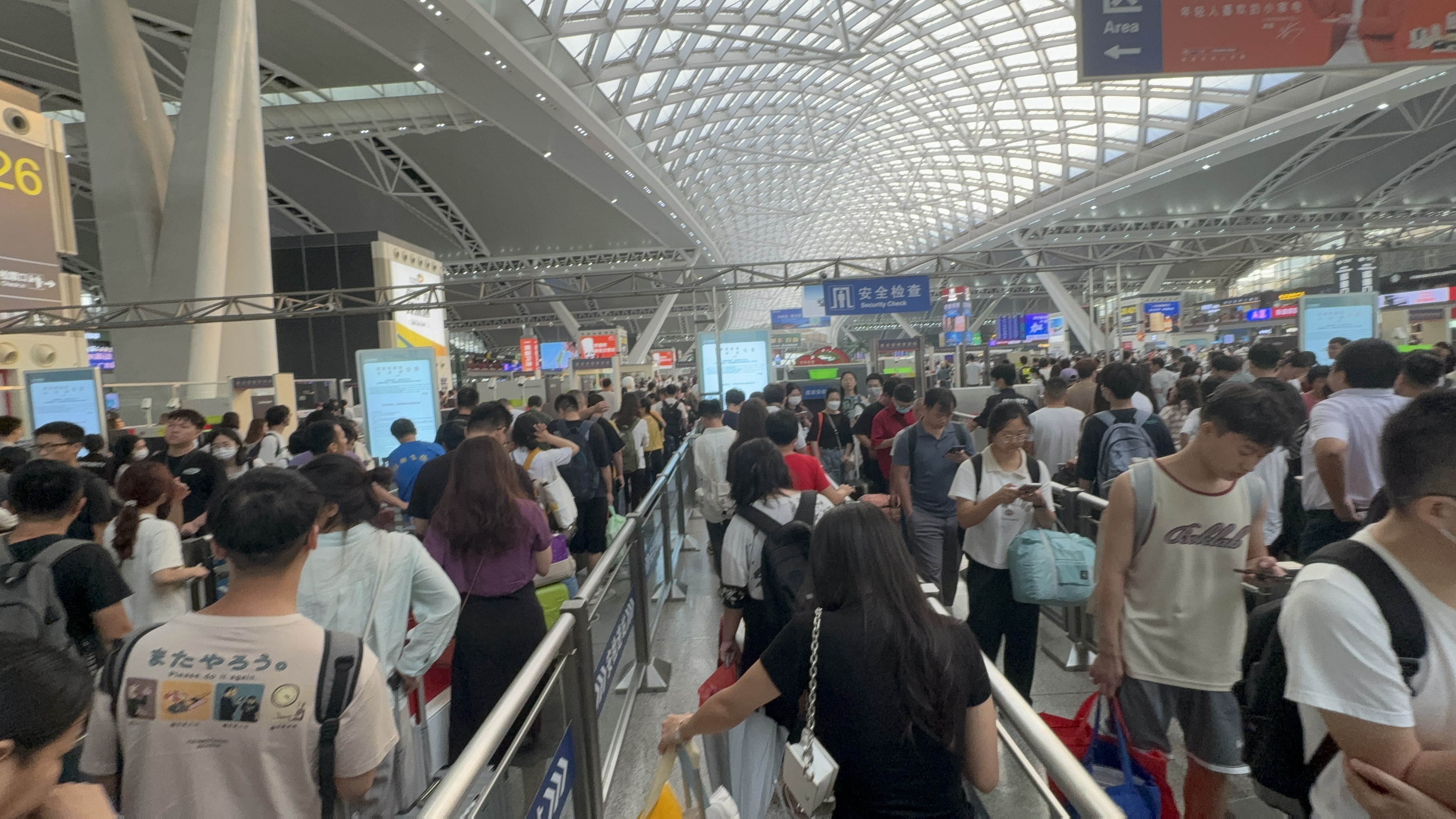 直击广州南站:进站安检排长龙,需预留充足时间乘车
