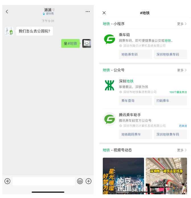 聊天时输入#地铁