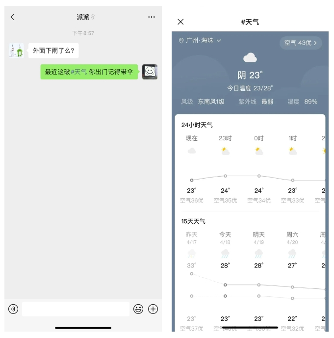 聊天时输入#天气