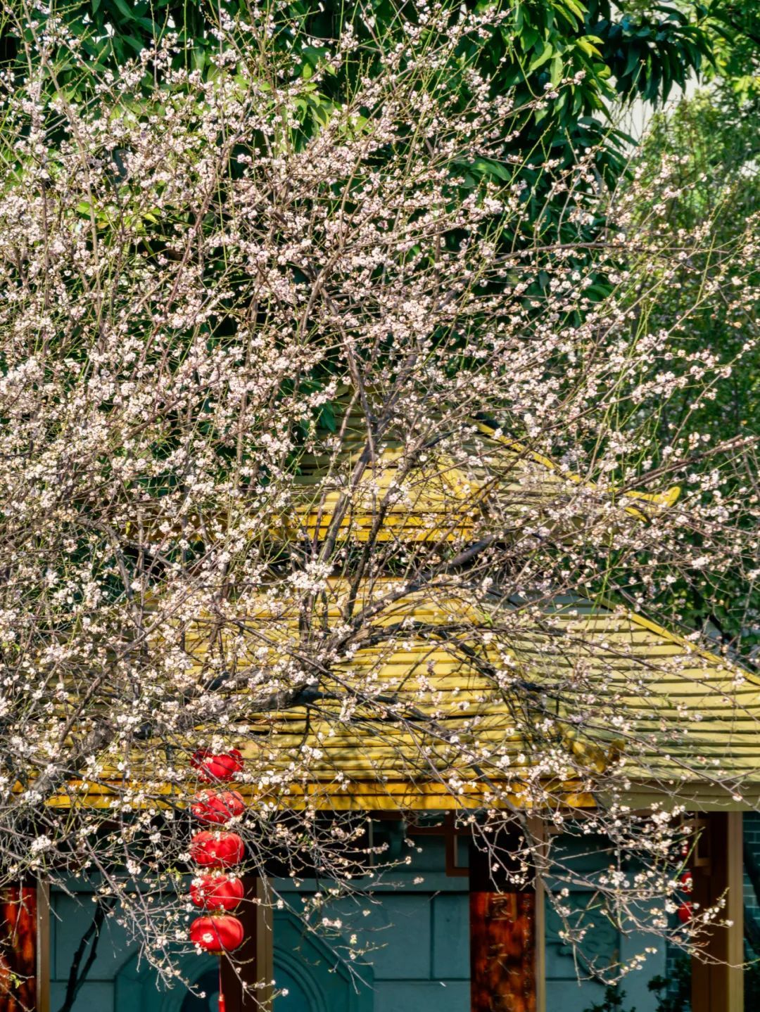 这里的梅花在周围古建筑的衬托下