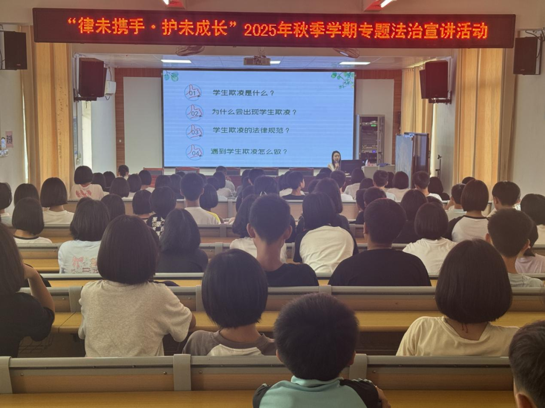 为进一步增强青少年法治意识,有效预防学生欺凌事件的发生,营造安全、和谐、法治的校园环境,日前,封开县司法局与肇庆市律师协会强强联合,走进莲都中学,成功举办了“律未携手·护未成长”2025年秋季学期专题法治宣讲活动,为120余名师生带来了一场意义非凡、精彩纷呈的法治盛宴。