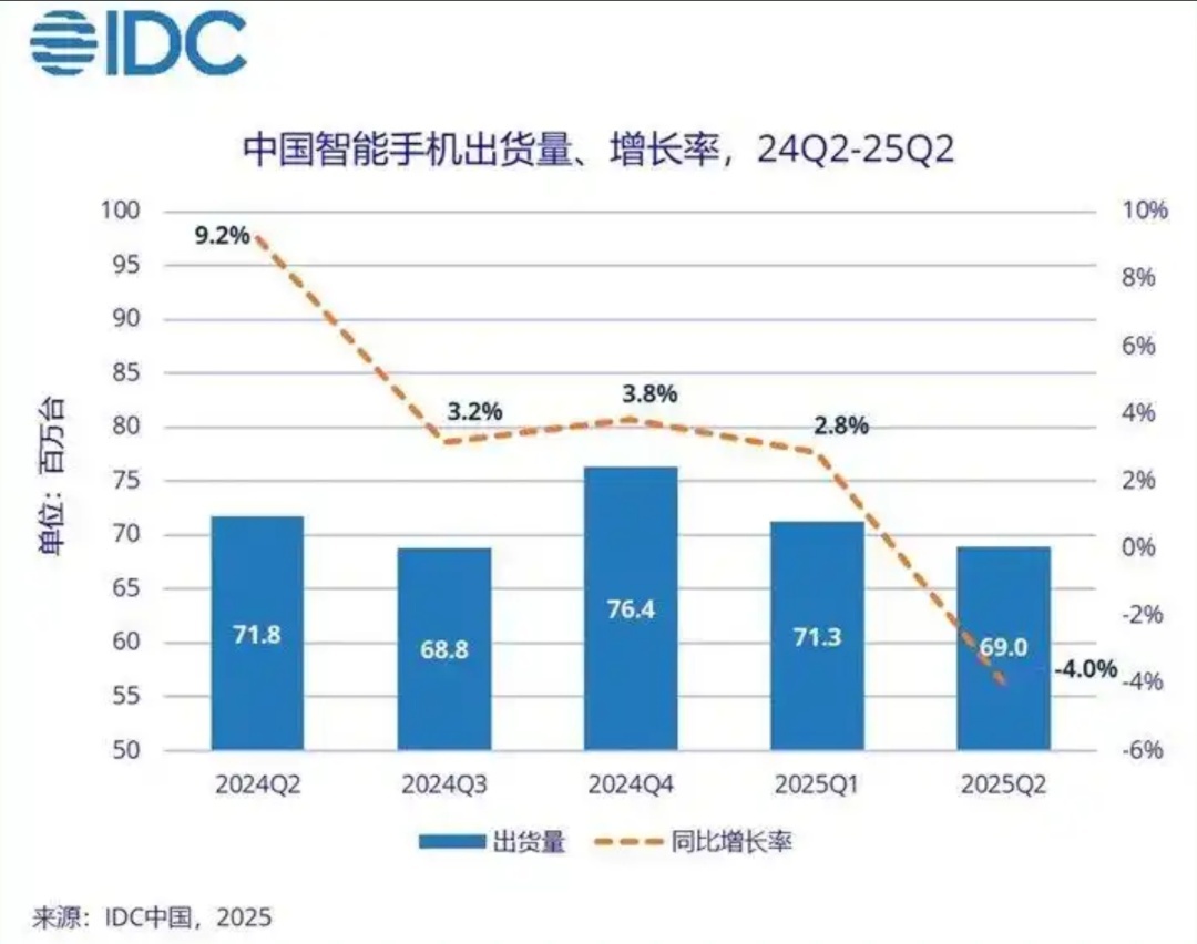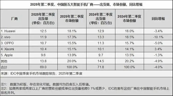 从数据上来看,去年4季度苹果出货量下降18.2%,国内市场份额从20.2%萎缩到17.1%。至今年二季度,苹果在“618”大促期间祭出了近年最大降价幅度,但出货量仍然下降1.3%,市场份额进一步下滑至13.9%。