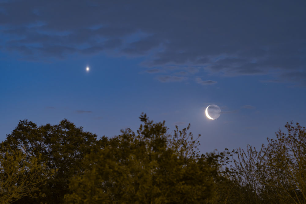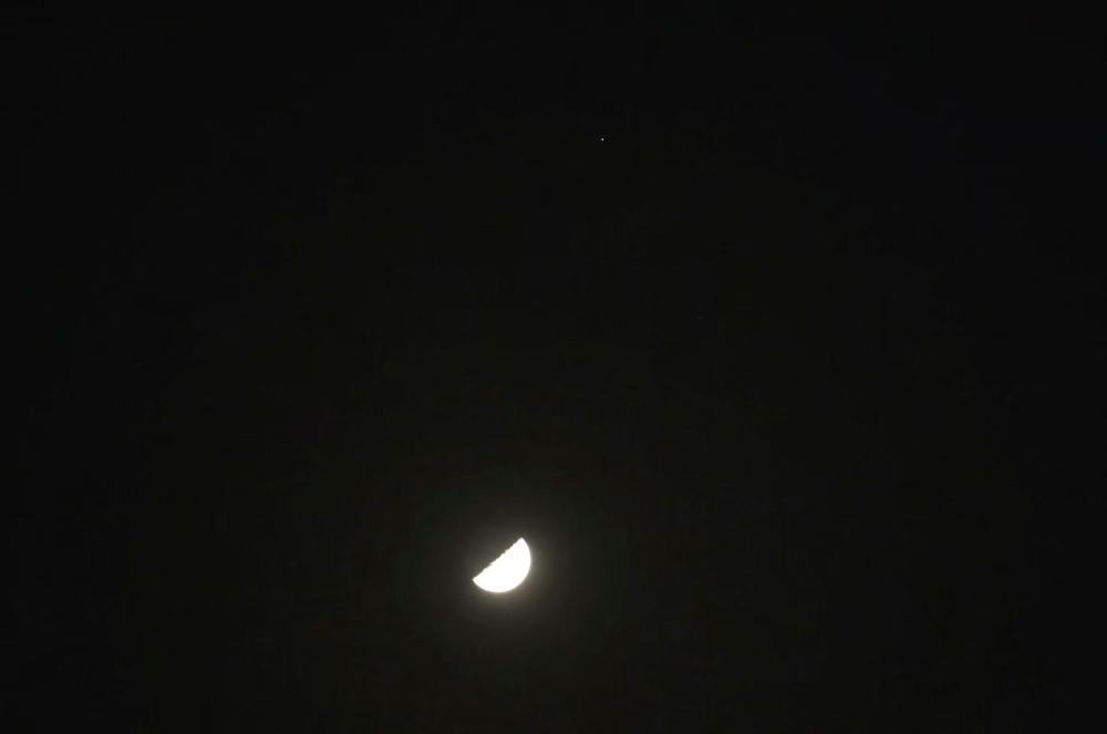 2025年4月25日在北京亦庄拍摄的金星伴月。(马劲 摄)