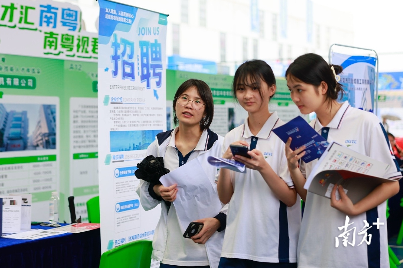 在招聘会现场,东莞新能德科技有限公司招聘经理徐子舰表示,该公司和技工院校共建了产业学院,学校直接采用企业生产线的技术参数作为教学案例,学生直接参与企业真实产线技改项目,实现了“教学标准=企业标准”的深度融合,培养出的学生毕业后“上岗即上手”。