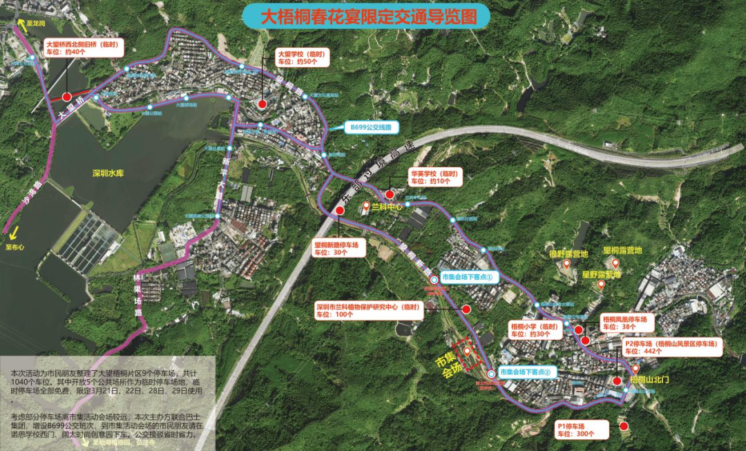 停车场:本次将开放超1000个停车位,除了P1、P2收费型停车场可提供700个停车位,还首次联动小学(仅周末开放)、兰科中心开放免费停车场。具体停车场车位数量可通过“趣梧桐”小程序查询。