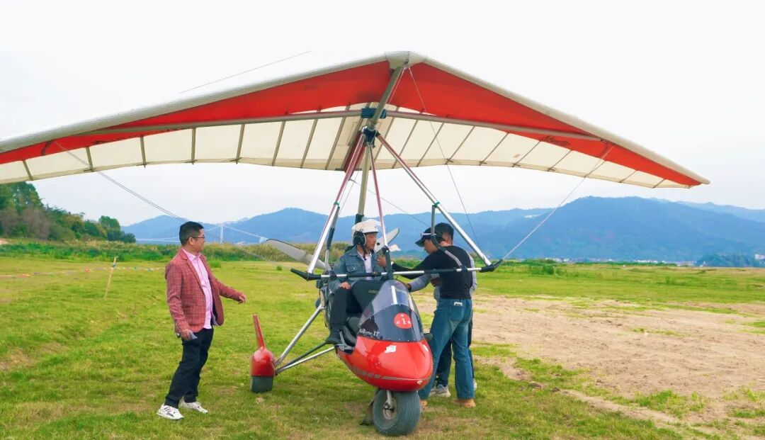最受欢迎的低空飞行项目中,游客搭乘轻型飞行器、滑翔伞等装备缓缓升空,在空中可俯瞰西江风光、田园村落与悦城全域美景,将乡村新貌尽收眼底,实现“换个角度看悦城”的体验。