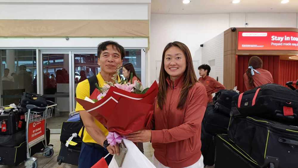 当天上午10点多,当中国队球员在悉尼机场国际到达大厅出现时,早已在此等候的众多球迷纷纷表示:“欢迎女足!中国队加油!”有球迷还为队员送上鲜花,并与她们合影留念。