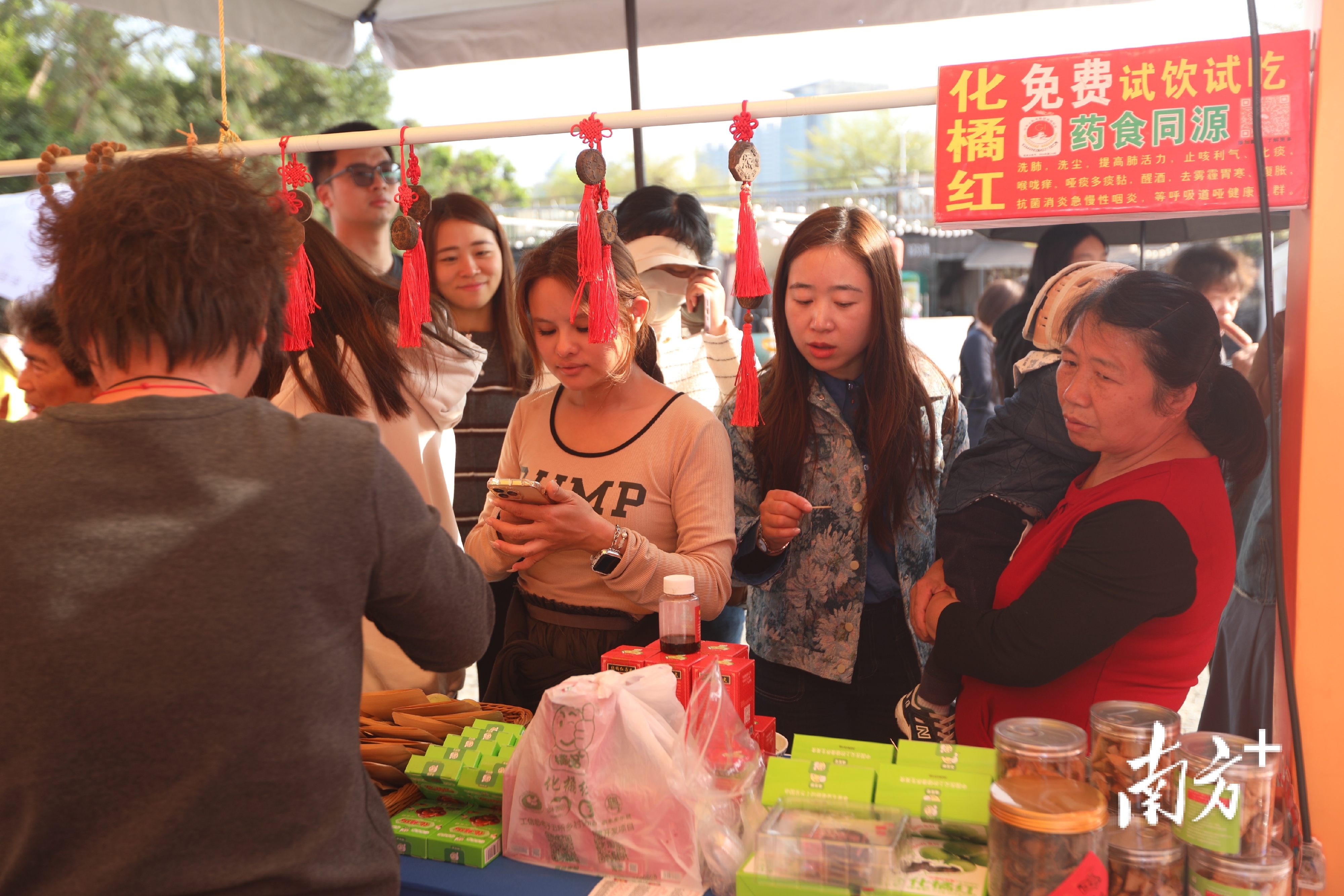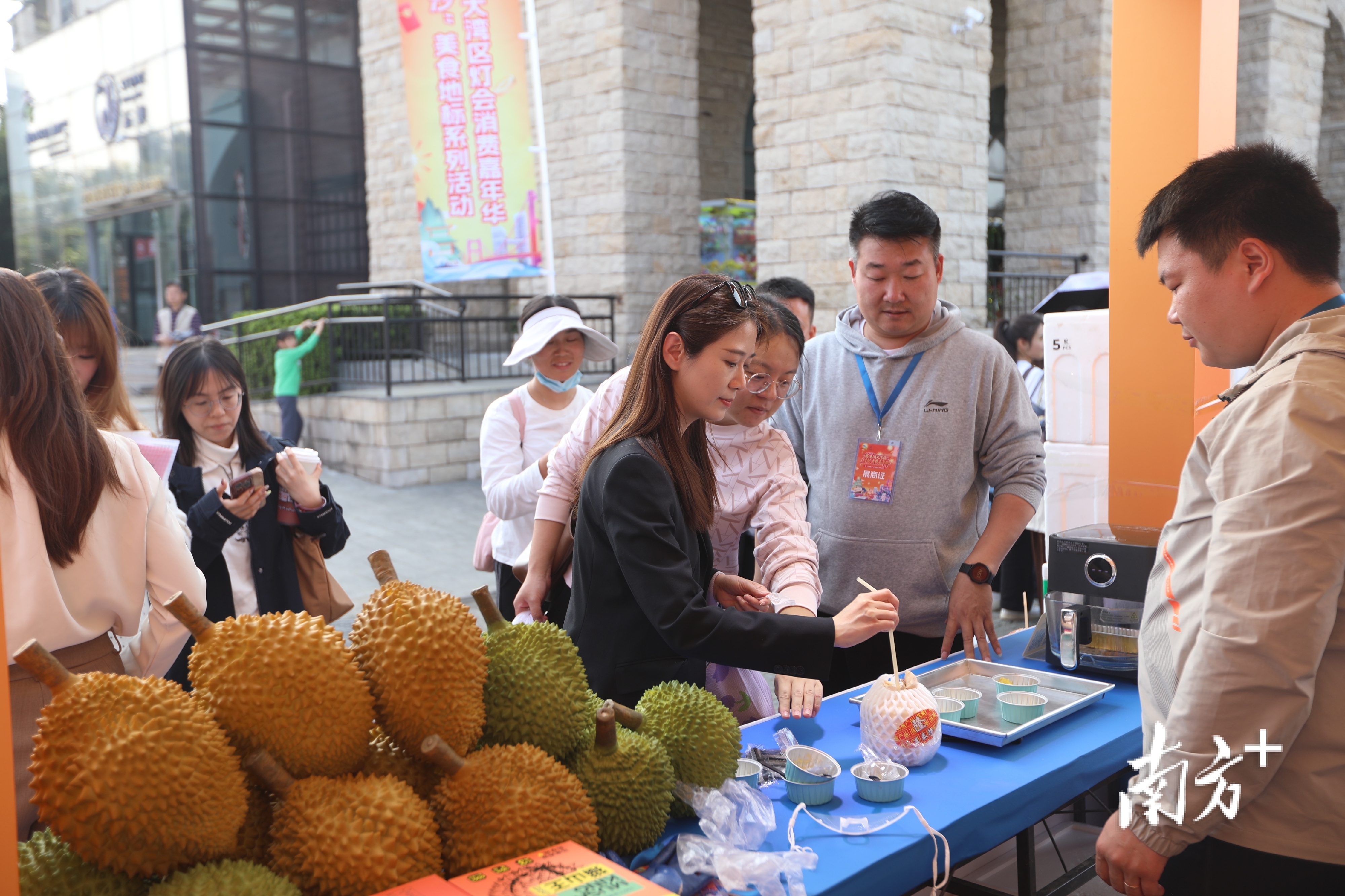 启幕当晚,国家级非物质文化遗产——黄阁麒麟舞登场,矫健灵动的舞姿瞬间点燃现场气氛。舞台外的互动游戏区同样人气高涨,市民游客挑战趣味游戏解锁专属印章,集齐三枚即可兑换限定礼品。而在30个美食展位组成的特色美食一条街上,凤凰单丛茶、新会陈皮、英德红茶、新垦莲藕等地理标志产品摊位前排起长队。