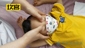 手法:自眉头起沿眉向眉梢成一横线。两拇指自眉头向眉梢成分推。30-50次。