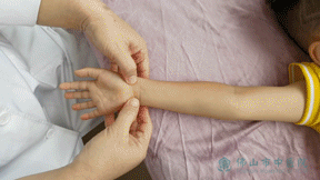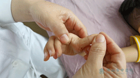 清心经——拇指指腹或桡侧缘紧贴穴位,从中指指根向指尖方向直推。200次。