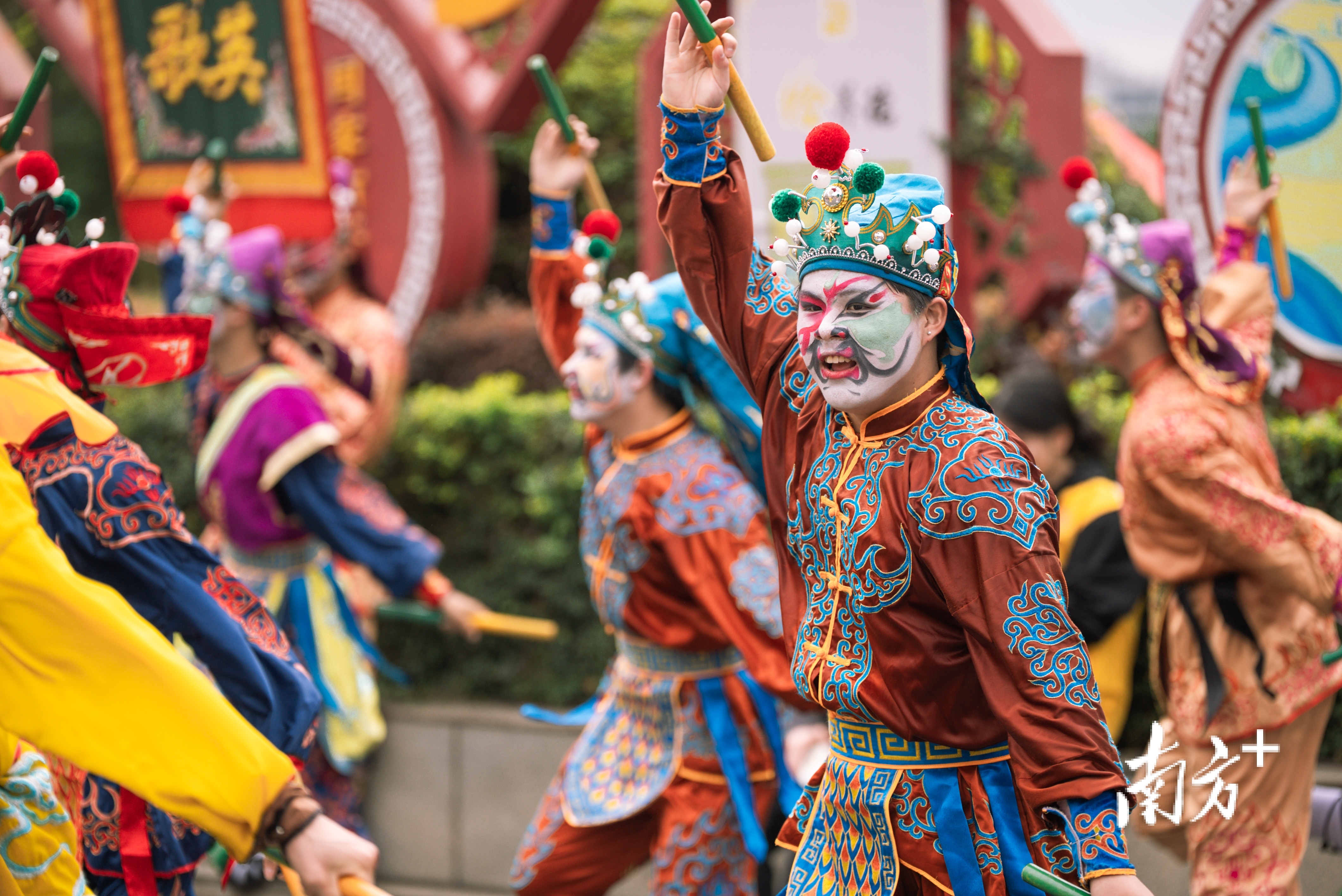 外地项目中,普宁英歌方阵点燃全场,舞者面绘英雄脸谱,手持双短棒,随锣鼓演绎“双龙出海”等阵型,刚劲威猛。吴川飘色以“高、精、险、奇、巧”惊艳四座,演员凌空立于色板上,仿佛天外飞仙,每一板都是一座流动小舞台,摄影爱好者连按快门。