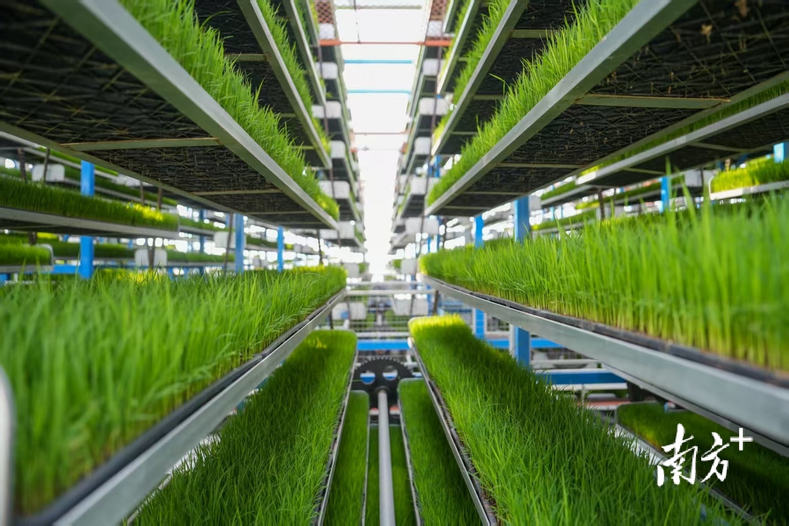 广东供销天禾台山育秧中心的W型循环立体育秧设备。