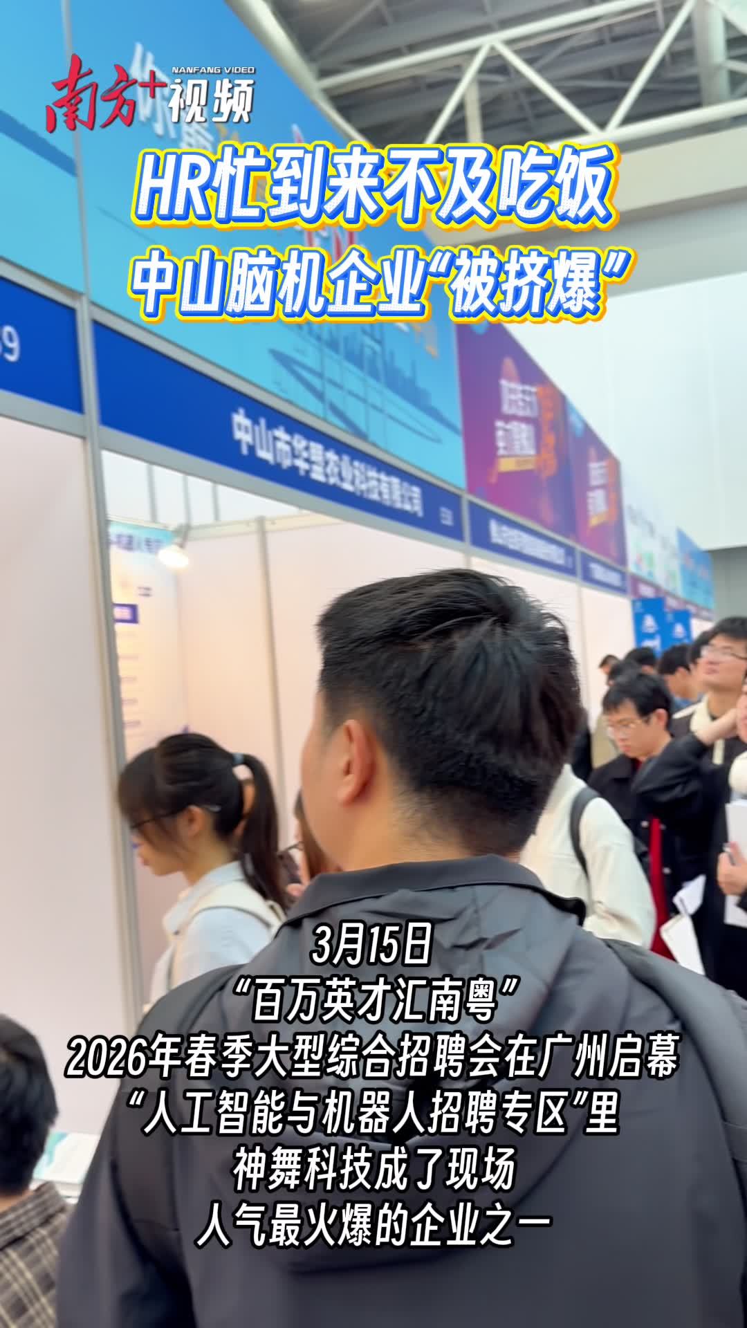 3月15日,“百万英才汇南粤”2026年春季大型综合招聘会在广州启幕。广交会展馆人头涌动,“人工智能与机器人招聘专区”里,神舞科技成了现场人气最火爆的企业之一。
