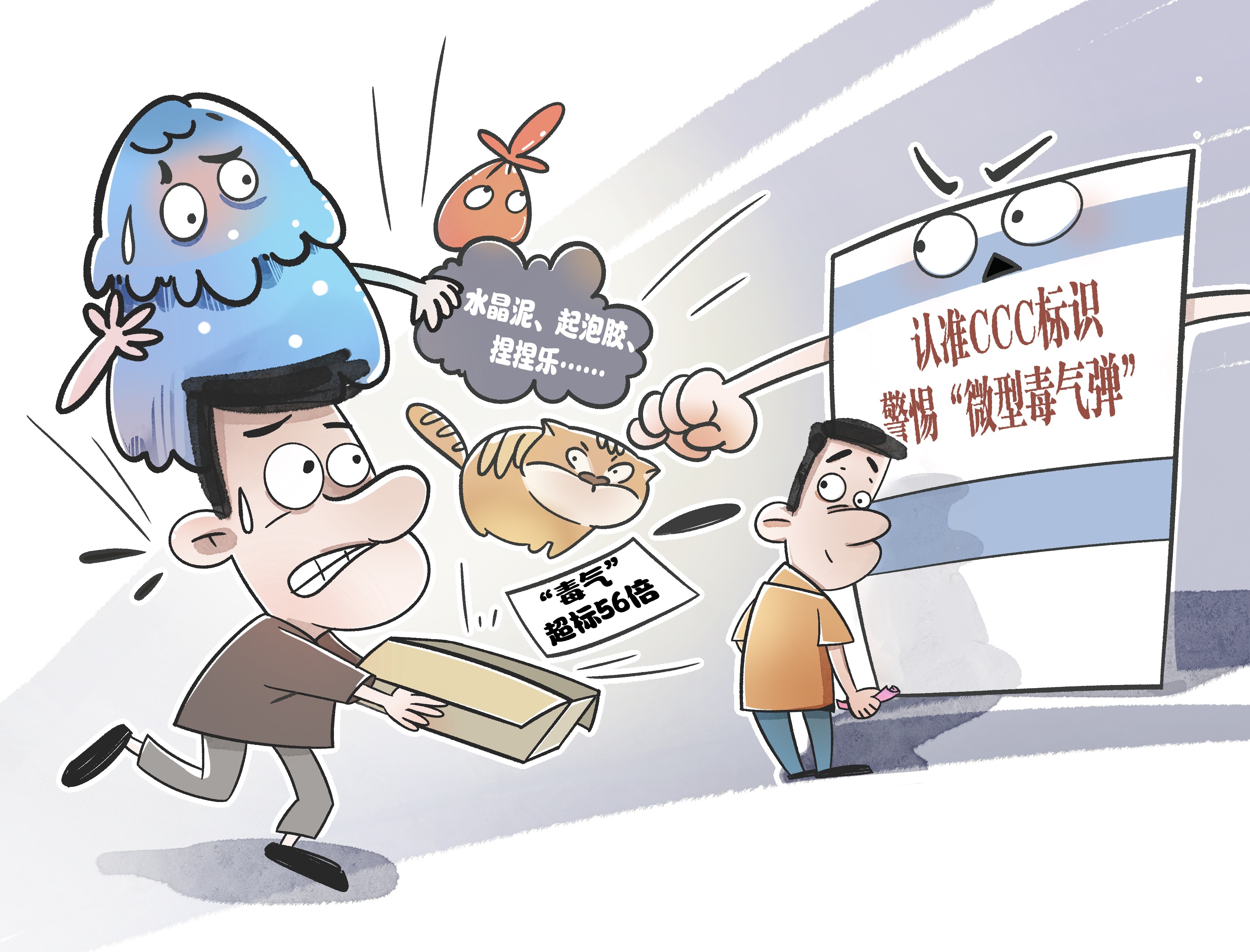 中国玩具和婴童用品协会调查显示,118家企业生产的126批次玩具中,胶类解压玩具普遍存在TVOC(总挥发性有机化合物)超标问题,个别甚至超过新国标限量值56倍,敲响了玩具安全质量警钟。数字触目惊心,隐患不容忽视。长期接触这些不符合标准、产品质量存在较大隐患的“毒玩具”,将直接危害儿童中枢神经系统、肝脏和造血功能,必须提高警惕、严加防范。