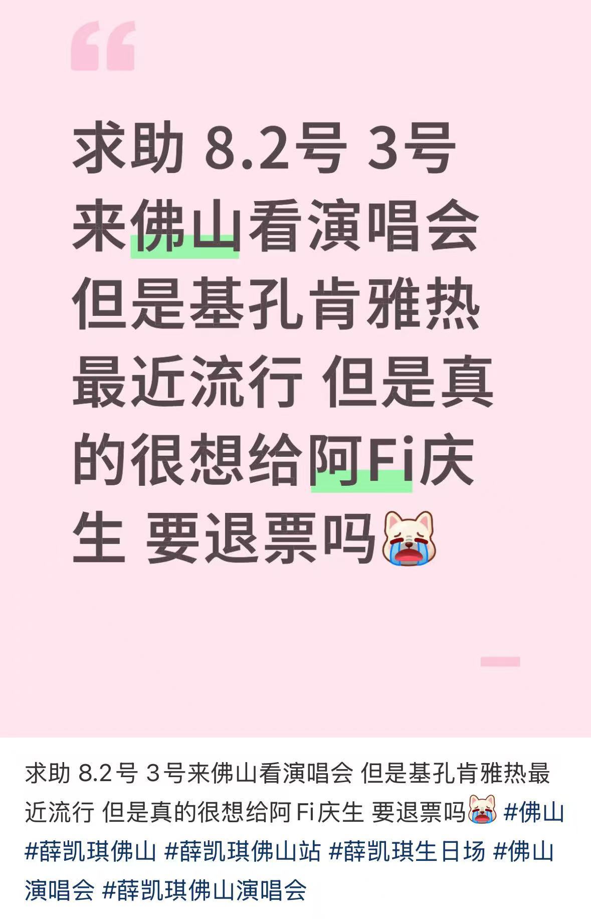 近期,不少薛凯琪的歌迷陷入纠结,一方面想去演唱会现场为其庆生,另一方面又担心正在佛山顺德流行的基孔肯雅热,“退也退不了,已经过了退票期限,到底怎么办?”