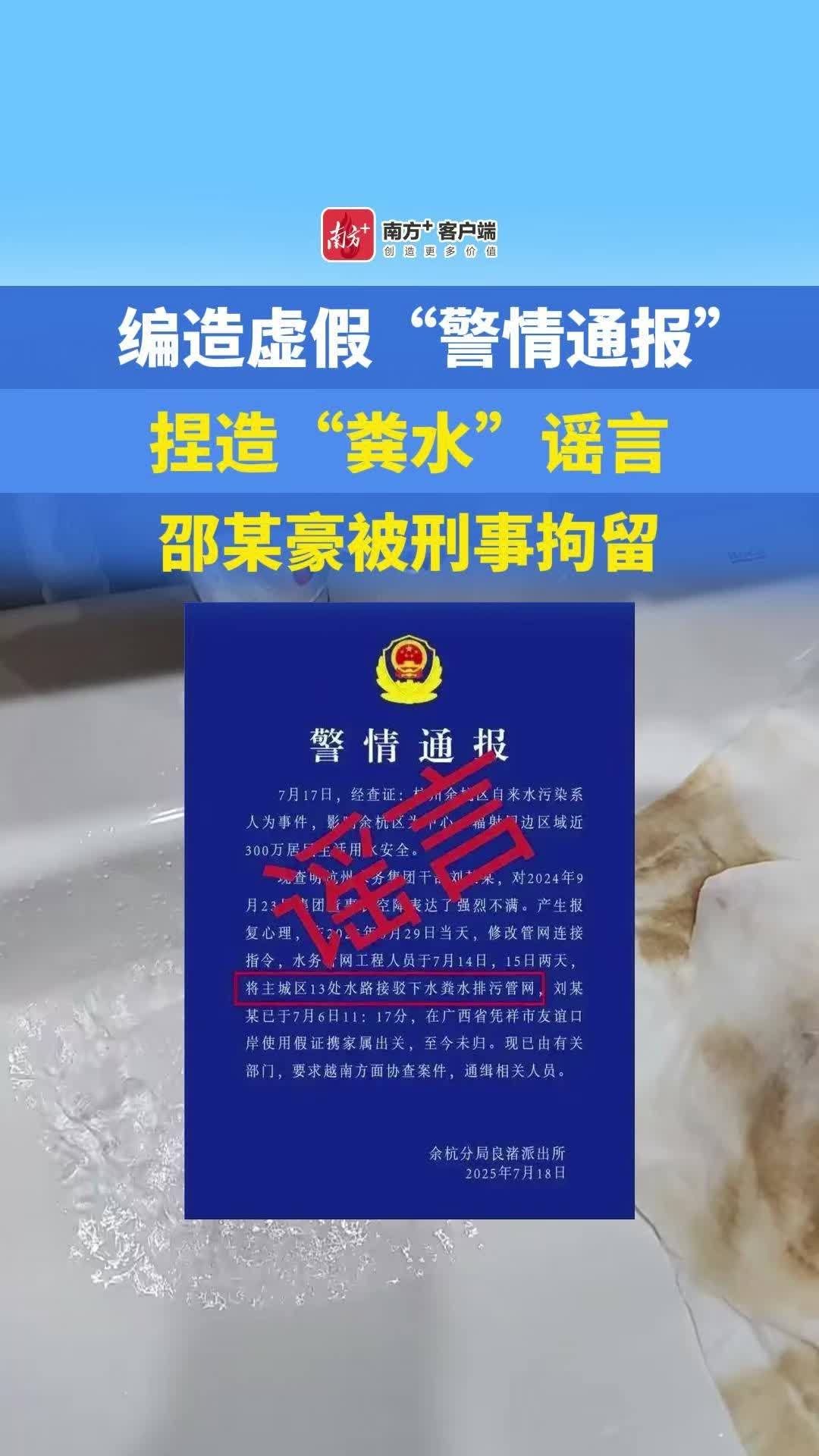 发布虚假“警情通报”,捏造杭州“粪水”谣言,邵某豪被刑拘