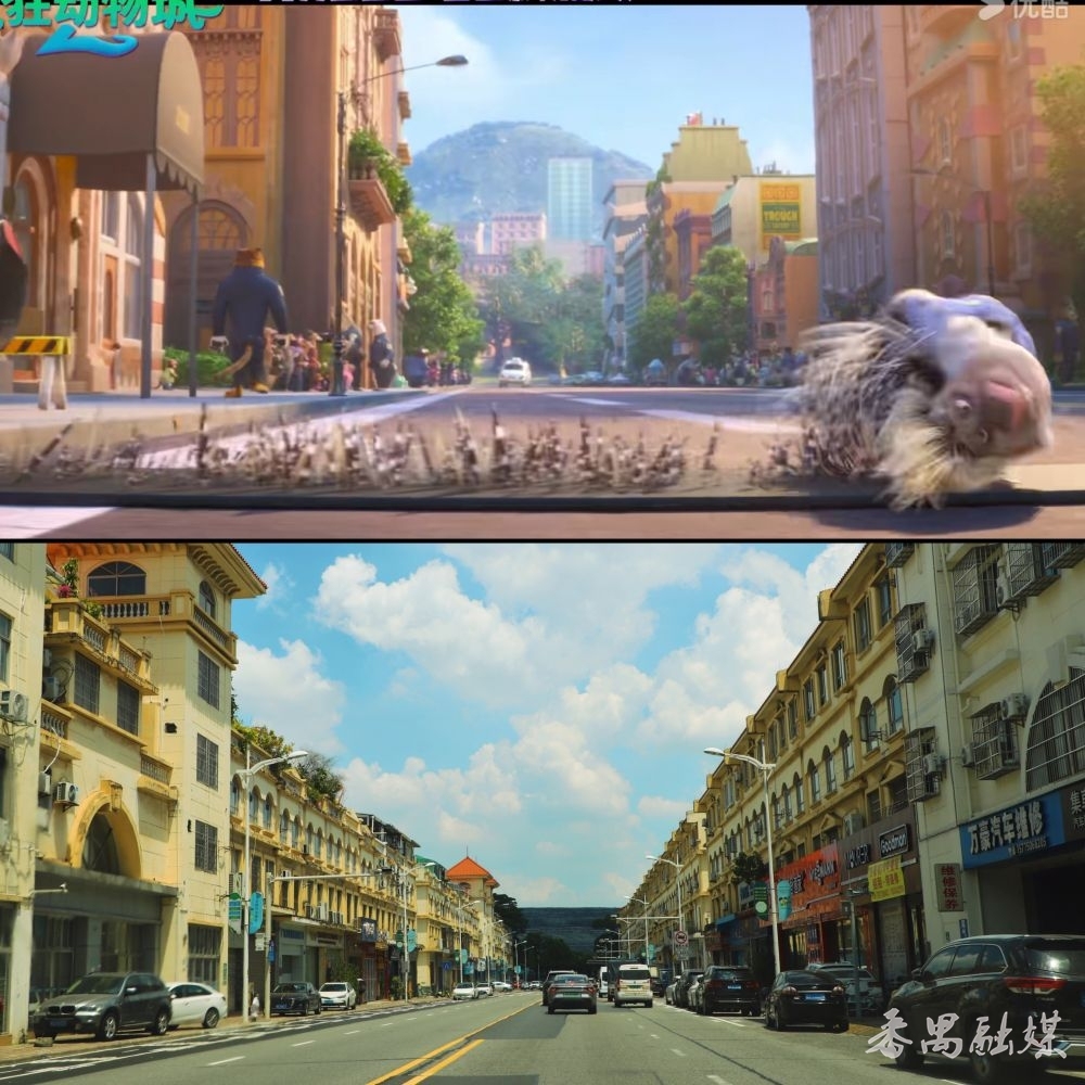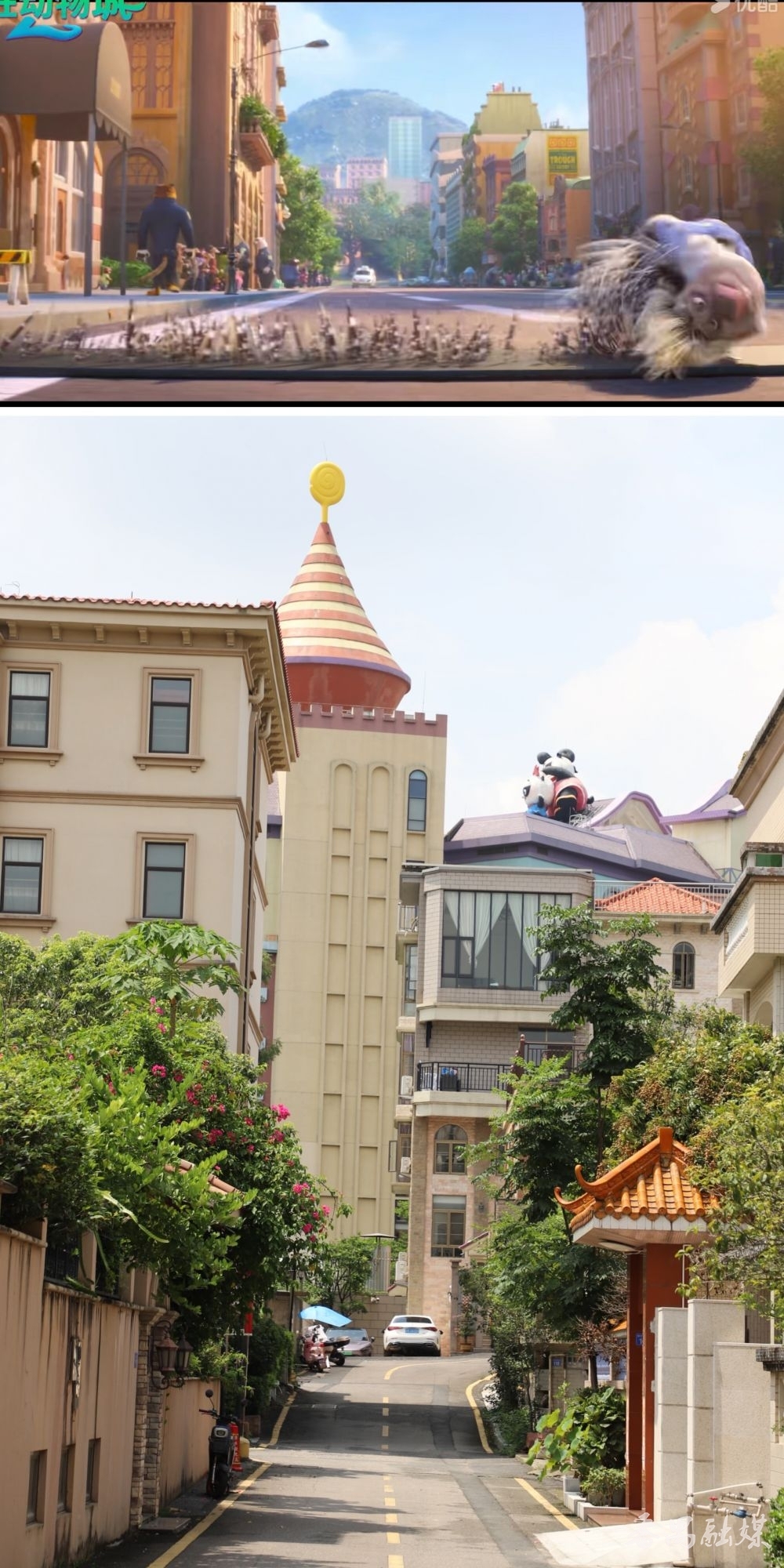 影片中的动物城(上)和番禺城市景观(下) 图源:掌上番禺