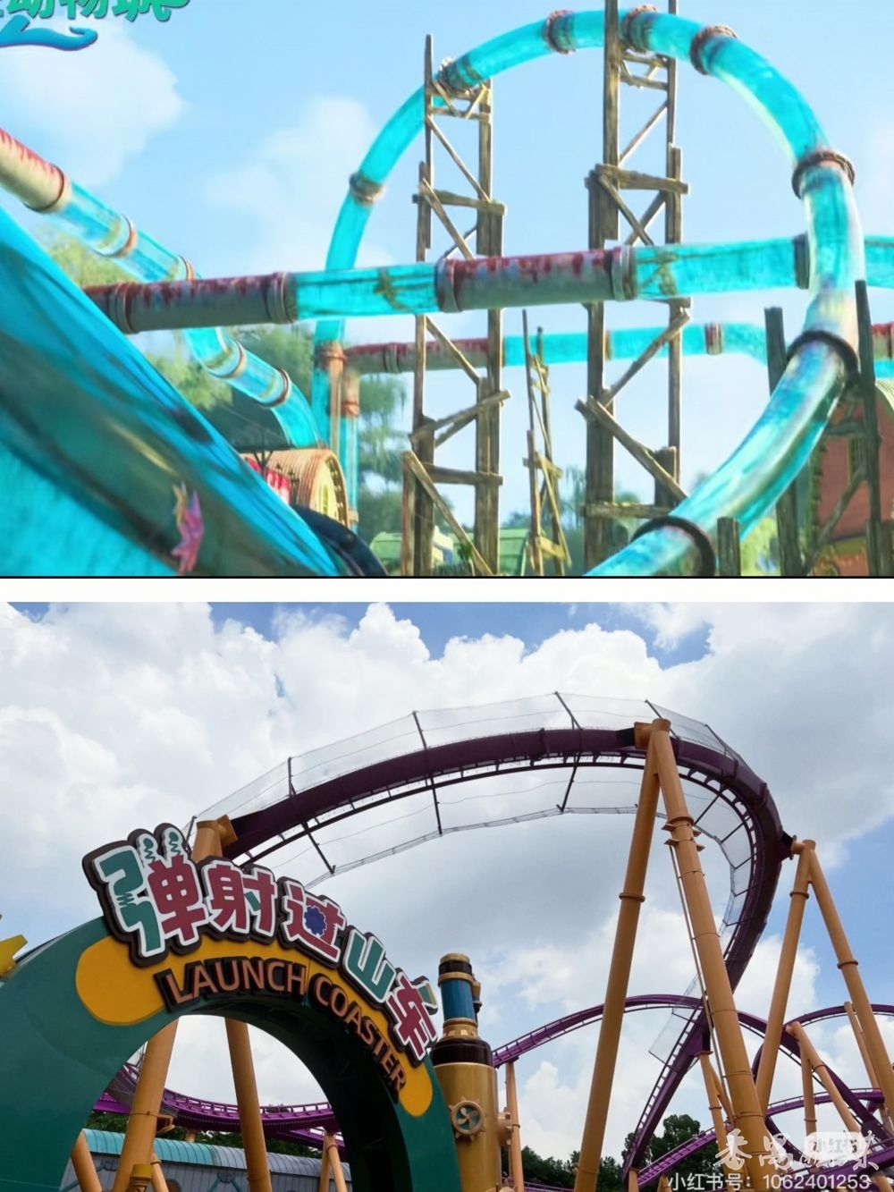 影片中的游乐装置(上)和长隆欢乐世界的过山车(下) 图源:小红书网友@跳起来接好运