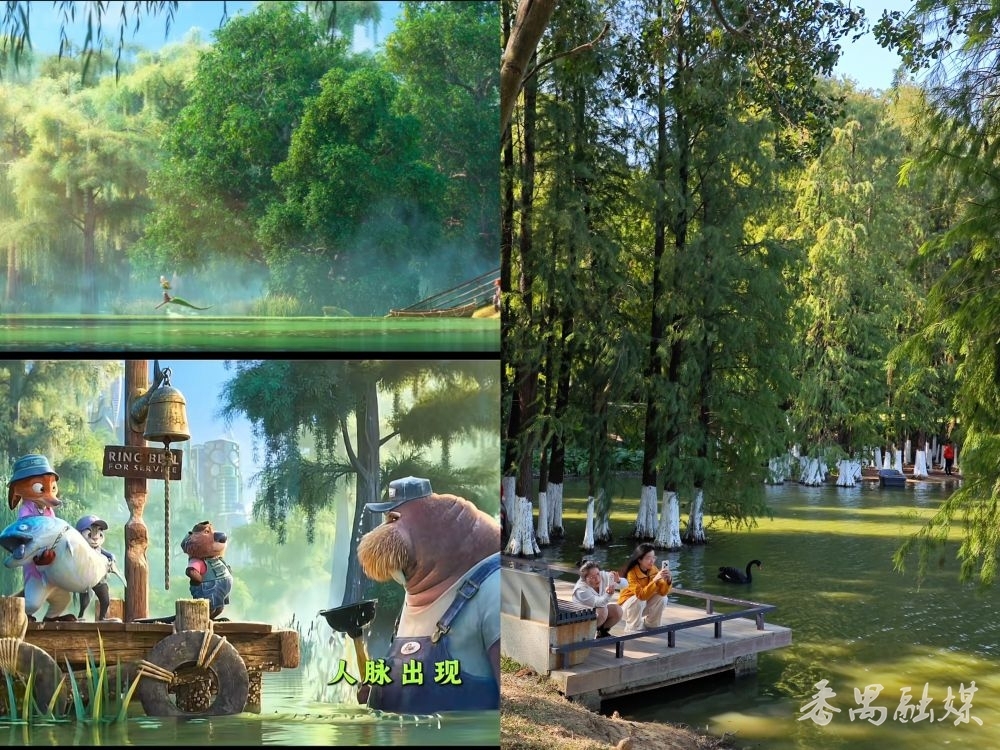 影片中童幻美丽的湿地景象,在大夫山森林公园有着中式意境的回响。漫步栈道,看晨光穿过叶隙,洒在沉睡的水面上,整片绿意仿佛触手可及、可步入其中。这里的幽静,与电影里的湿地市场异曲同工,却更添几分东方的含蓄与宁静。