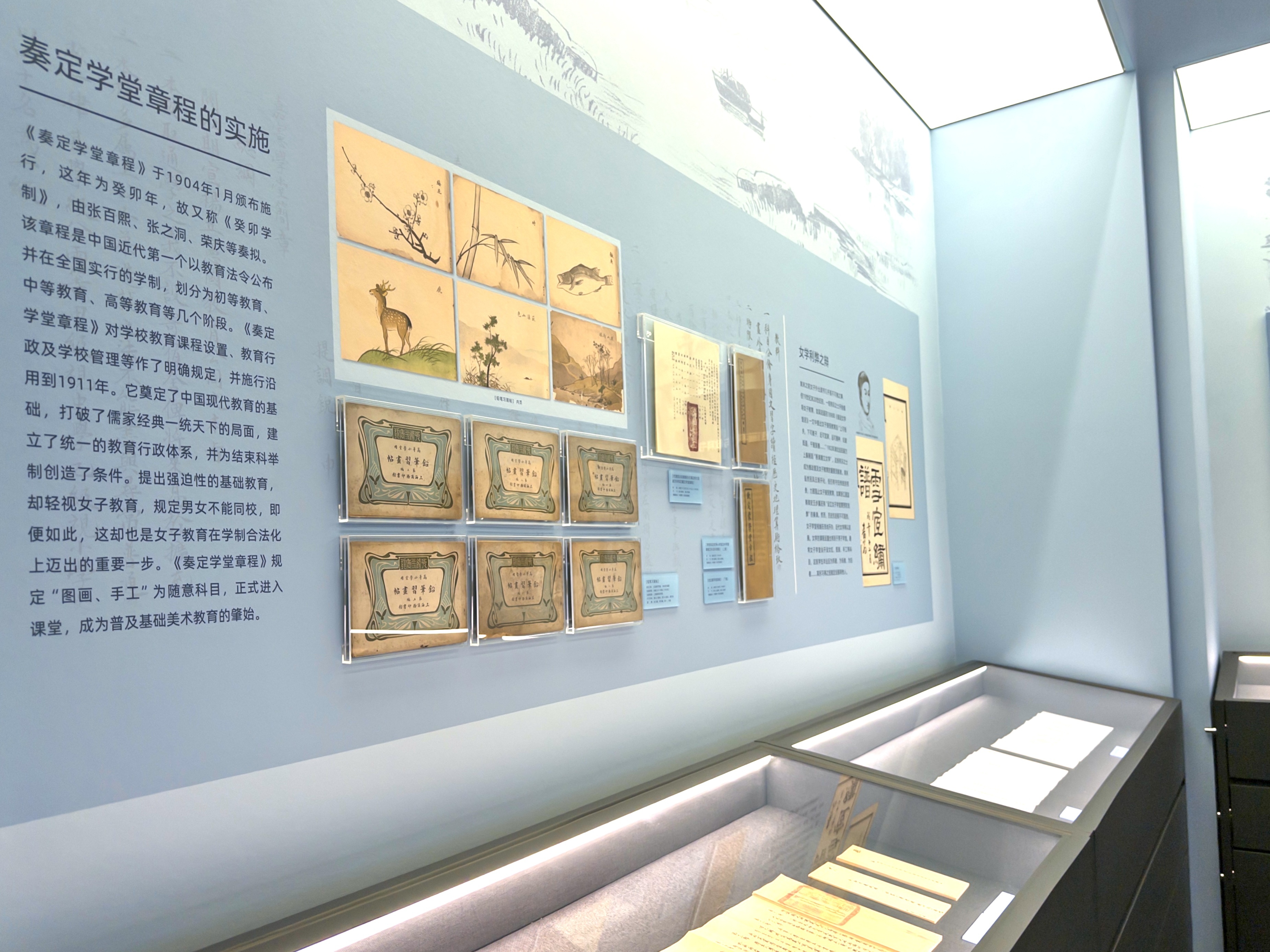 博物馆以教育政策、大纲、课程标准等为线索,以教材、教辅、教参、教具等为主体,辅以教学计划、课程表、成绩单和学生作业等丰富资料。博物馆以基础美术教育体系萌芽期(1904-1911)、基础美术教育理念探索期(1912-1949)、基础美术教育学科化建设期(1949-2024)为时间线索,全面系统梳理中国基础美术教育的发展历程。馆藏中,清代文献600余种,民国时期文献1800余种,新中国文献2600余种,其中中国第一历史档案馆提供45份文献、中国第二历史档案馆提供5份文献,部分文献为首次公开。