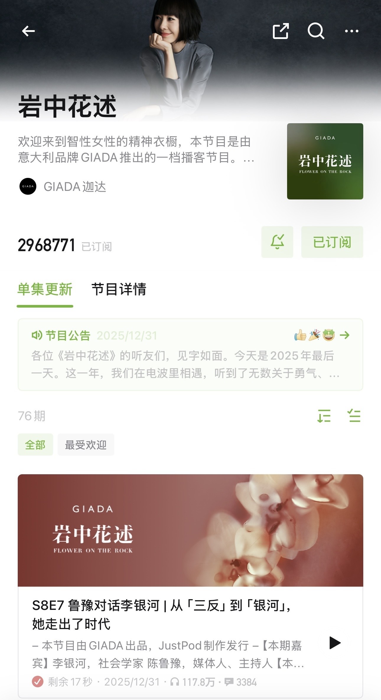 “岩中花述”在小宇宙App的订阅量已超过296.8万。